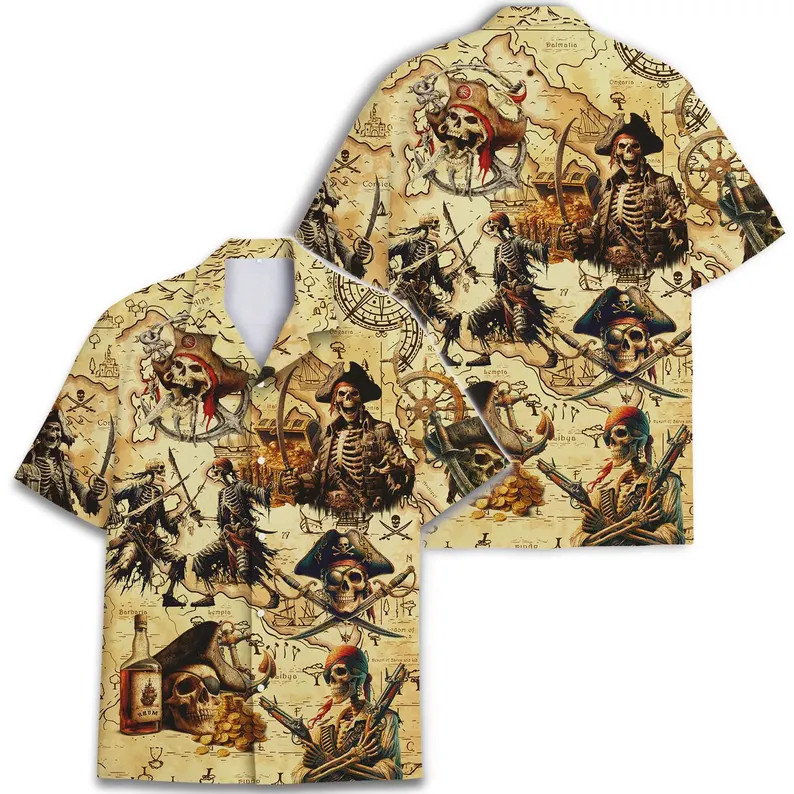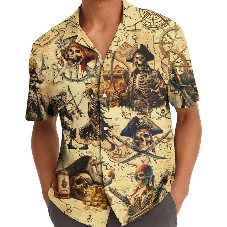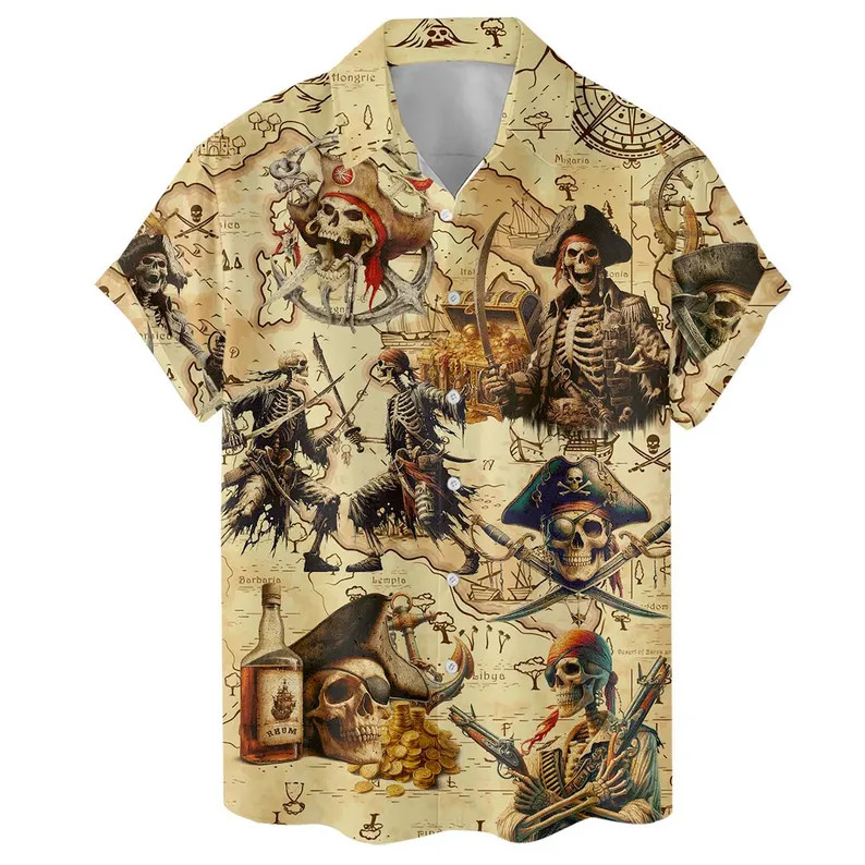 $ 8.56Pirate Skull Hawaii Shirt Men's Beach Vacation Aloha
