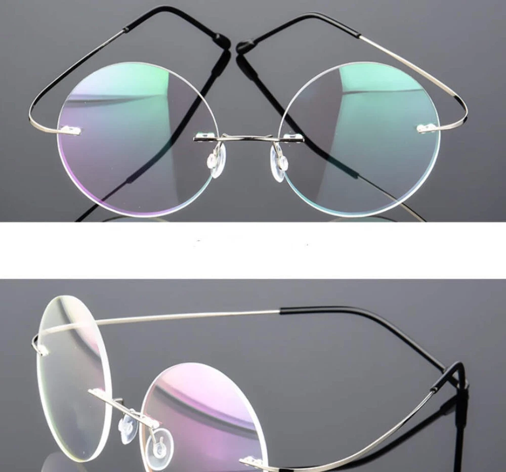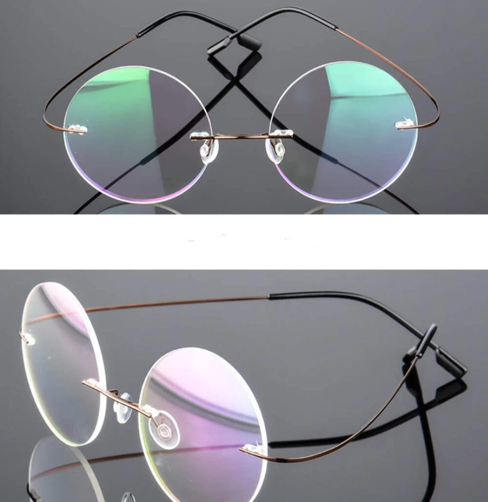 Retro Round Titanium Alloy Frameless Elastic Eyeglasses for Men Women