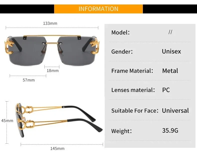Gafas Sol Cuadradas Hombre Mujer Vintage Sin Montura Mujer Retro Espejo Oculos Descripción: Tipo de elemento De moda y de moda Escenarios aplicables exterior Tipo de producto Gafas de sol de moda tipo de estilo cuadrado Ancho de la lente 57MM Altura de la lente 45MM Material de las lentes policarbonato Nombre del departamento ADULTO Género HOMBRES Material del marco policarbonato Atributo óptico de las lentes UV400 Tipo de artículo GAFAS Tipo de gafas Gafas de sol