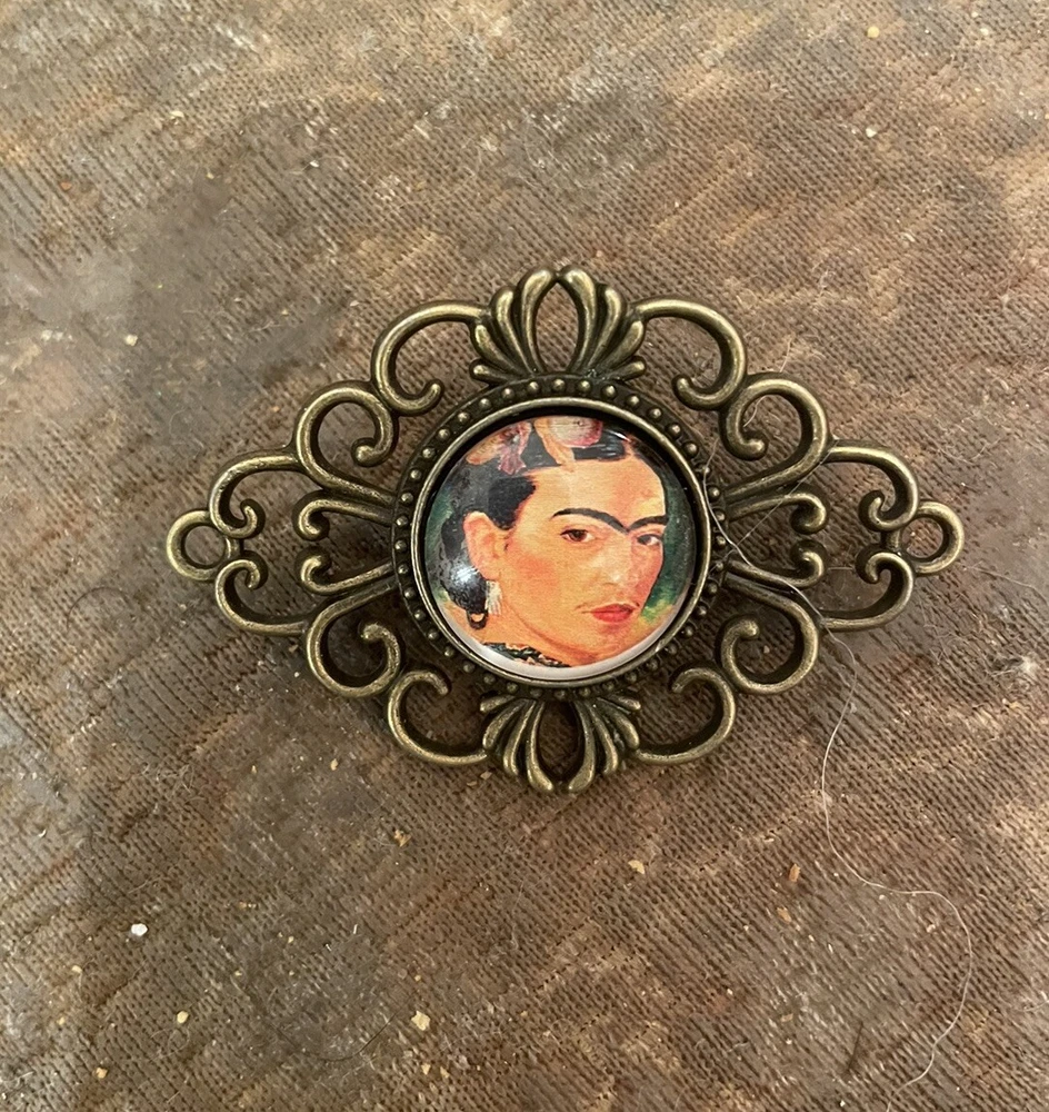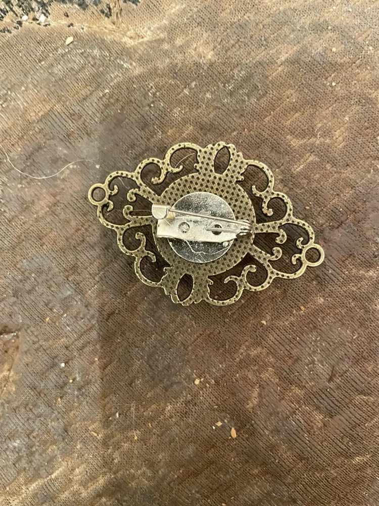 Retro charm. auction is for (1) new without tags Retro vintage victorian bronze Filigree Frida Kahlo Green Flora rectangle brooch pin. vintage pin on back. 2 inches width across x 1.2 inches height.. Comes in a velvet pouch and gift box. makes a charming gift too! will ship worldwide
