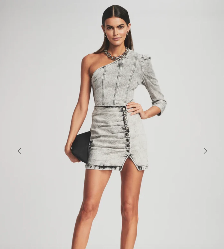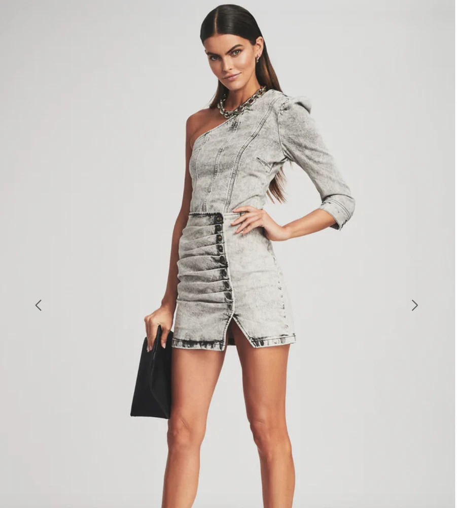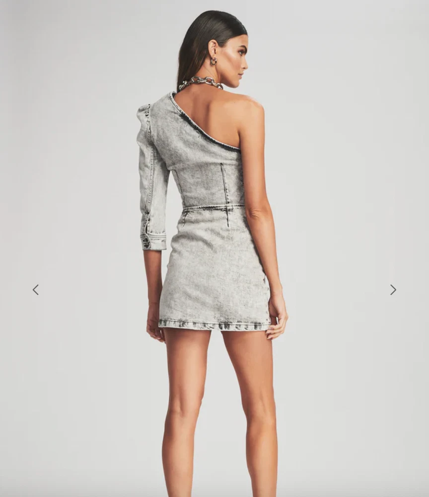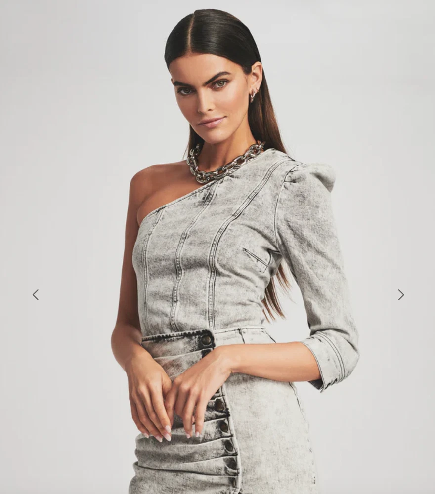Make a bold statement in the Moira Top. The asymmetrical top is crafted out of subtly faded denim and complemented by a one-shoulder puffed sleeve. The style is finished with a side zipper. Shown here in Light Acid Grey.98% Cotton, 2% ElastaneMade in ItalyModel is 5'11" wearing size XS Price New $265