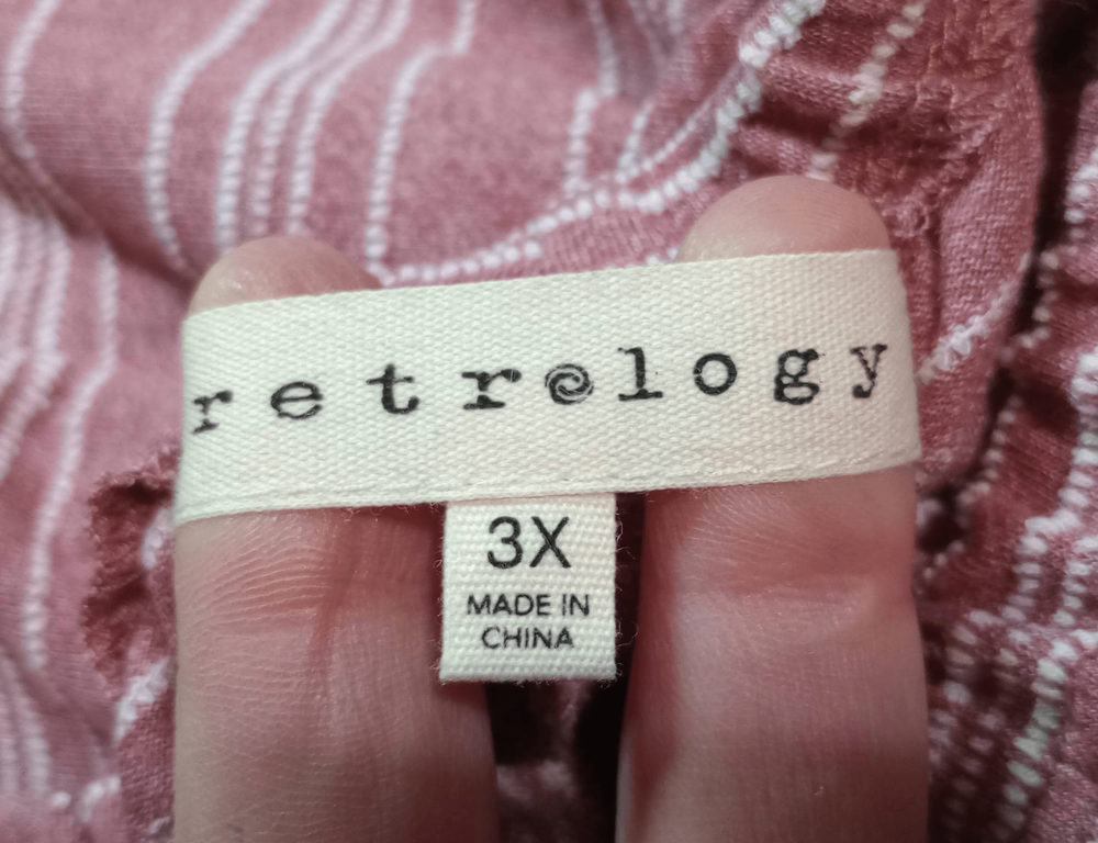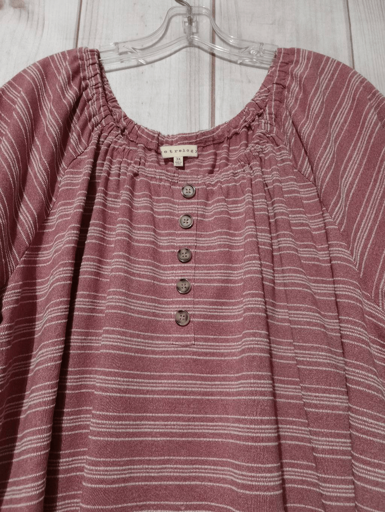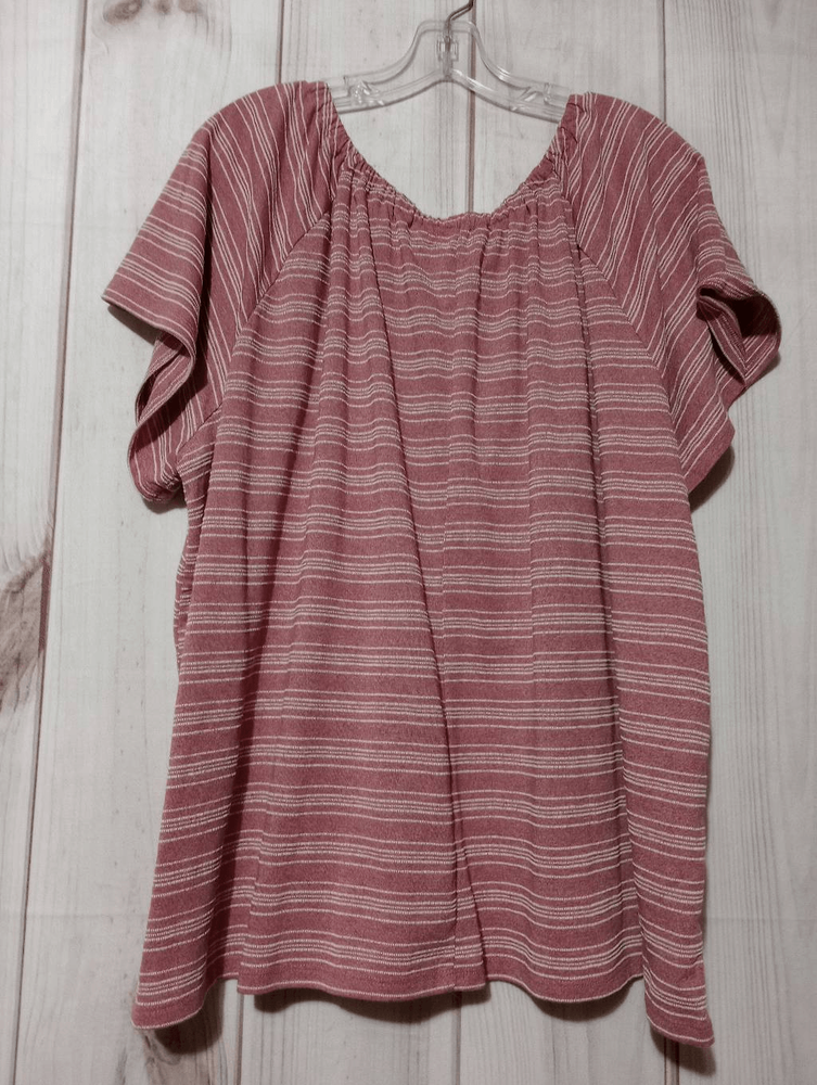 Retrology Shirt Ladies 3x Short Sleeve Rose Pink White Stripe Measurements in picture 75% Polyester 25% Cotton No fading fraying rips or stains Textured Casual Flowy Feminine