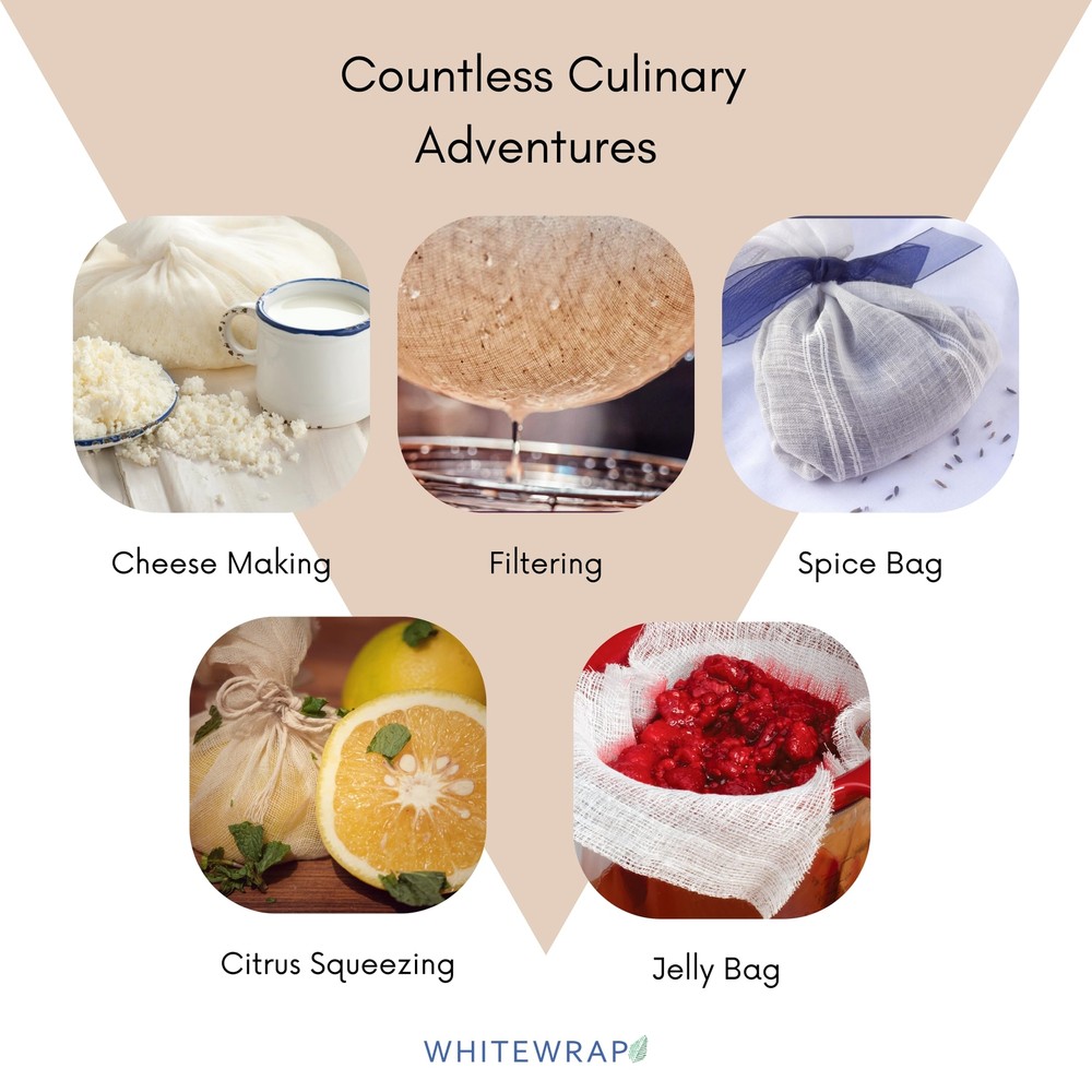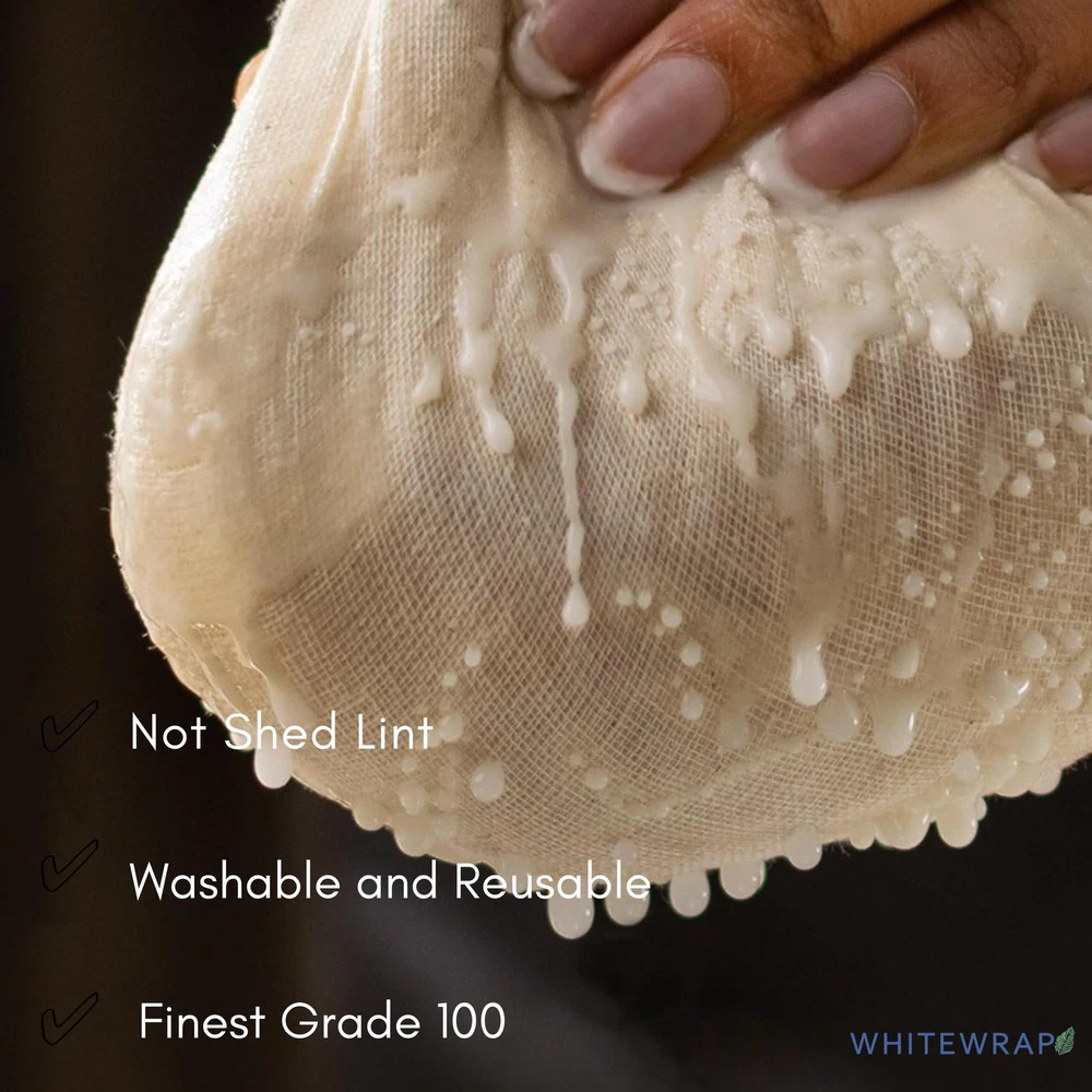 ✅ 100% UNBLEACHED ORGANIC COTTON - Premium organic cheesecloth meets the highest kitchen standards. When using cheesecloth for straining you don't have to worry about the left over chemicals leaching out of the cheese cloth and into your food, cooking or skin. ✅ GRADE 100 CHEESECLOTH - Grade 100 is the highest grade and great quality in cheese cloth. More impurities will be filtered out. Grade 100 cheesecloth is the highest quality and this cheesecloth can be washed and reused, unlike other cheesecloth brands and substitutes which just for one-time use ✅ Cheesecloth for cooking, halloween decorations, Spice bags, canning, kombucha scoby, cheese, yoghurt and wine making, keeping chicken or fish intact when poaching, roasting turkey or chicken, squeezing citrus juice without seeds, fine surface polishing, staining, cleaning, dusting, Halloween decoration, ghost-making. ✅ ECONOMICAL - Cheese cloths for straining are a washable and reusable strainer. Cheesecloth can be used for industrial purposes as well in paint shops, automotive shops, as well as bakeries, commercial kitchens and restaurants ✅ 100% GUARANTEE: Like everything we sell, if you are not completely satisfied we will refund your money, no questions asked.