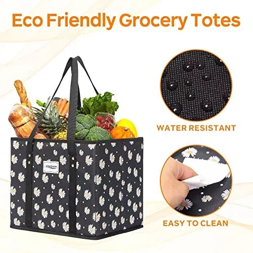 Mainul Extension Reusable Grocery Bags, Shopping Cart Bag,Heavy Duty,Hard Bottom Foldable Trunk Organizer,Set of 3 (Daisy) Non-woven,Polyester Fabric Imported LARGE CAPACITY:Large reusable grocery bags have plenty of space,you can fit in the cart and put shopping things separately to the three bags.Grocery bags reusable shopping bags can be filled with what you need for the week,such as fruits and veggies,cans,bread,non food items,etc. REUSABLE & DURABLE:MVSCOCEAN heavy duty reusable grocery bags are made of high quality polyester fabric,which is more gravity-bearing and durable than non-woven fabric.Reusable grocery totes can hold up to 40 lbs,it's sturdy and durable. EASY TO STORAGE AND FOLD:Spacious rectangular opening for easy to fold and store,reusable grocery bags foldable work great for getting groceries without using plastic sacks. They can fold up to make shopping easy and convenient. MULTI-PURPOSE & ORGANIZED:Cute reusable grocery bags can be used as shopping bag,picnic bag,laundry basket,trunk organizer,storage box to organize toys,books,all kinds groceries. ECO FRIENDLY:Grocery totes can be reused and recycled many times, it helps to reduce the use of plastic and make our environment more eco friendly. Free Shipping We offer FREE shipping on all orders! We ship within 5 business days, usually sooner. We use shipping services like: ePacket, USPS, China Registered Air Mail Post for faster shipping: UPS, FedEx, DHL (at extra cost) Please contact us for more details about shipping services that we provide. Return You can return a product for up to 30 or 60 days (Mentioned in the product listing) from the date you purchased it. Any product you return must be in the same condition you received it and in the original packaging. Please keep the receipt. Payment We only accept payment from eBay managed payments. Please pay as soon as possible after winning an auction, as that will allow us to post your item to you sooner! PS: We only ship orders after the payment complete. Customer satisfaction is very important to us. If you have any problem with your order, please contact us and we will do our best to make you satisfied. Please visit our eBay store to check out other items for sale! Thank you for your visite to our store.
