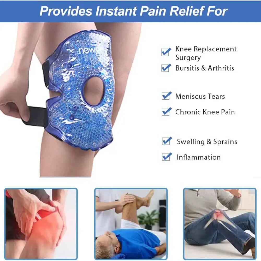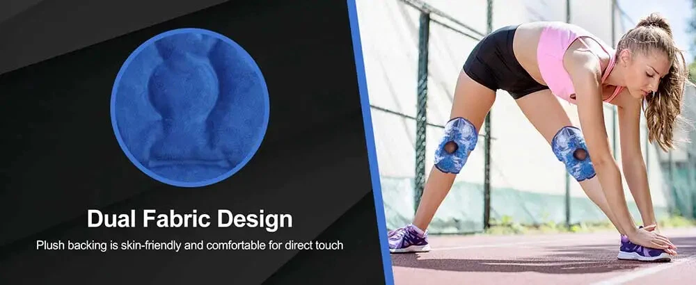 Pro Design for Knee - Contains 2 knee ice packs. Reusable knee cold pack wraps are integrated medical grade premium PVC with soft fabric backing. Perfect shape to ensure proper coverage and application of ice or heat. Adjustable strap provides size adjustment and allows for the adjustment of compression to suit your individual needs. The knee ice wrap remains flexible when frozen and stay cold for doctor recommended therapy time of 20 minutes. Fast Pain Relief - This knee cold pack is specially designed for knees and elbows and brings natural pain relief to knee sports injuries, knee soreness, sprains, strains, sprains and strains, and help to speed recovery from sports injuries, knee surgery. Hot Cold Therapy - For hot therapy, heat the pack in microwave in 10-15 seconds intervals, reducing pain and increasing circulation to promote rapid healing. For cold therapy, place the gel pack in the freezer at least 2 hours or until desired temperature is achieved. Good for muscle aches, sprains, swelling, bruises and joint pain. Soothing Relief - Whether you prefer to freeze pain away or soothe it with the help of warm therapy, this reusable knee ice wrap is the perfect choice for you! Get ready to relieve knee and joint pain and feel ready to seize the day with this high quality gel pack that delivers up to 30 minutes of soothing relief for your knees and elbows. Provides natural pain relief to knee injuries, and help to speed up recovery Whether you prefer to freeze pain away or soothe it with the help of warm therapy, this reusable knee ice wrap is the perfect choice for you! Get ready to relieve knee and joint pain and feel ready to seize the day with this high quality gel pack that delivers up to 30 minutes of soothing relief.