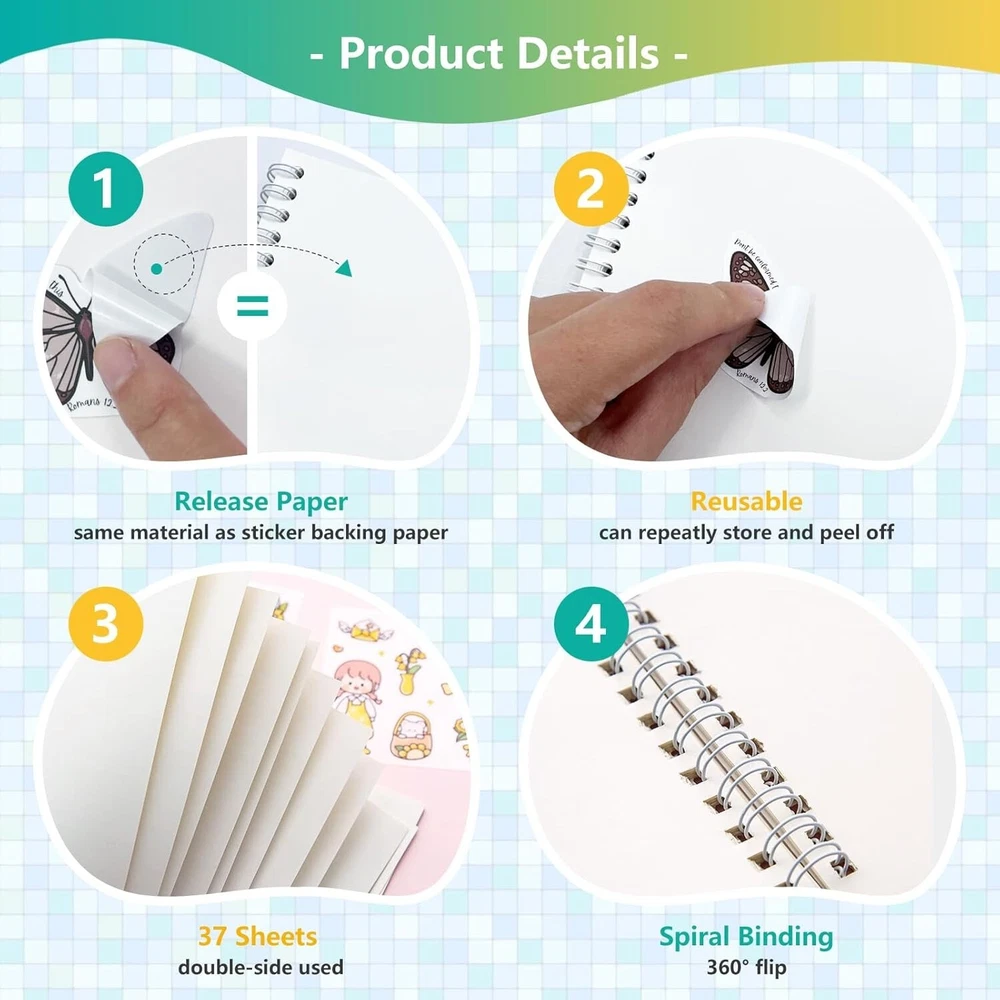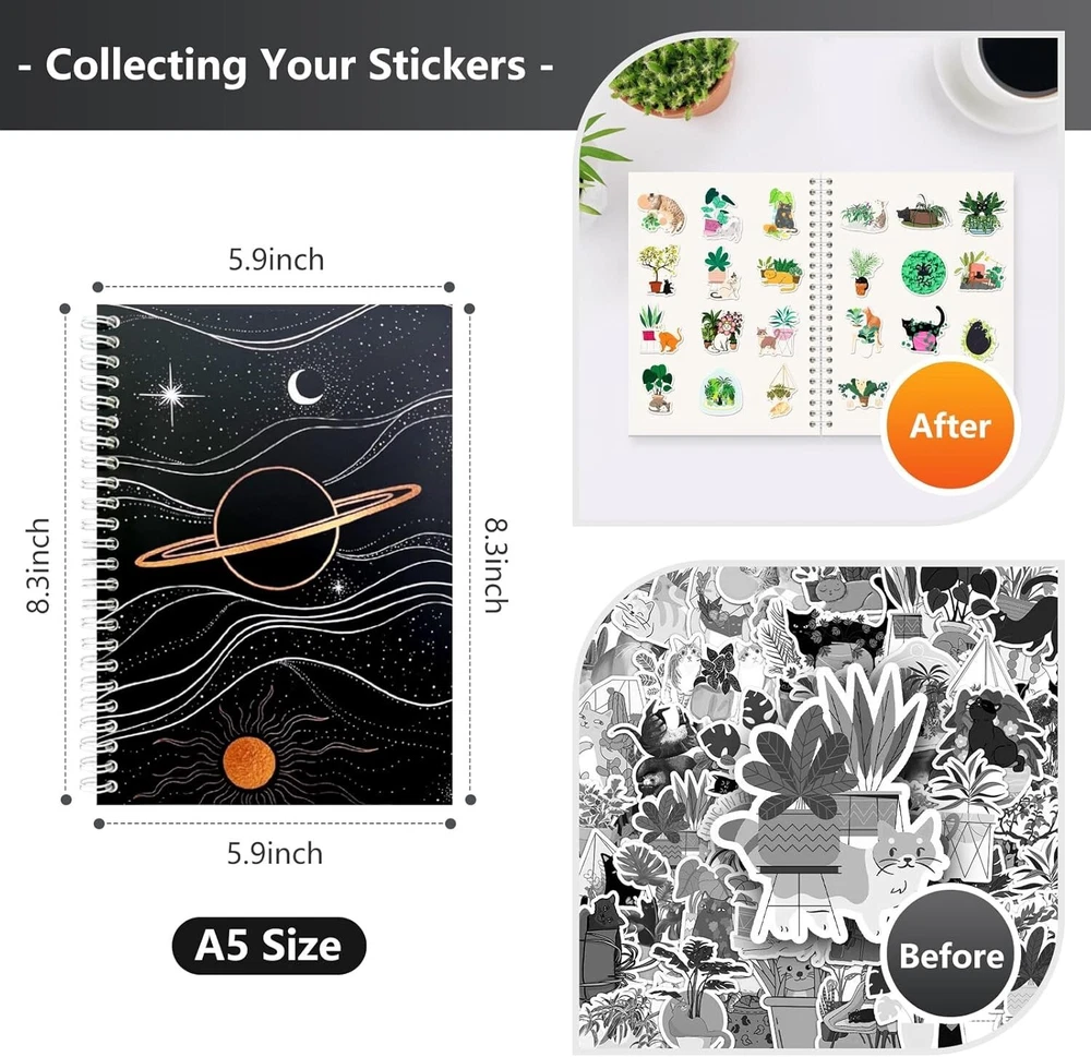 Reusable Sticker Book Collecting Album Sticker Storage Book for Adults 37 Sheets Description : You Will Receive: 1 x A5 Size (8.3 x 5.8 inches / 21 x 14.8 cm) sticker collecting book. There are 37 sheets inner page and can be used on both sides of each page (74 sides), which provides enough space to collect stickers and is easy to carry Same Material As Sticker Backing: sticker collecting book is made of high-quality release paper, which is like the back of a sticker. So stickers can be added and removed very easily and repeatedly, and can still keep stickers' stickiness. Collecting Your Stickers: Use this sticker album to store messy stickers without stressing about whether or not you will like where they are or regret it. You can classify stickers of different styles, and display your stickers more conveniently. Ideal Accessory: KPOONI sticker storage book is suitable for most kind of stickers, it a great addition to your planner journal scrapbook and so on. Great Gift: Sticker book collecting album is a perfect way to store your stickers if you're a hoarder and don't want to stick them anywhere permanently. Great gift idea for who has many stickers.