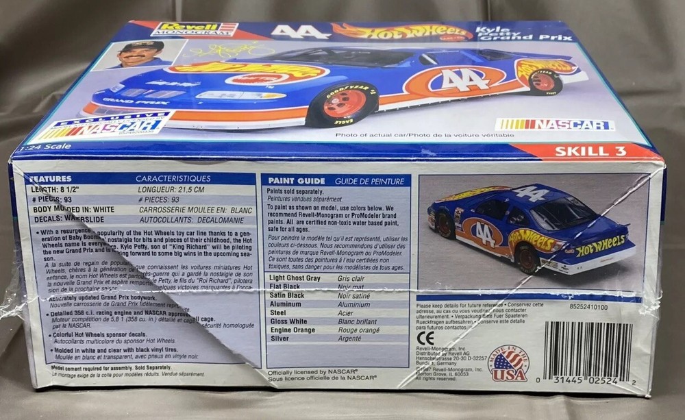 For NASCAR enthusiasts and model car collectors alike, the Revell Kyle Petty #44 Hot Wheels Pontiac Grand Prix Model Kit is a must-have addition to your collection. This 1:24 scale plastic model car features a multi-color design and comes in an unopened box for preservation of its pristine condition. The model car is based on Kyle Petty's NASCAR racecar from the 1997 race series, adding a touch of nostalgia to your collection. The Revell model car is perfect for ages 10 and up, making it an ideal gift for children and adults alike. The kit includes all necessary materials to assemble the model car, with easy-to-follow instructions for step-by-step assembly. This NASCAR racecar replica is a great way to show your support for Kyle Petty and the Hot Wheels series. Please see pictures for condition. Visit our Store for more NASCAR items. Thank you.