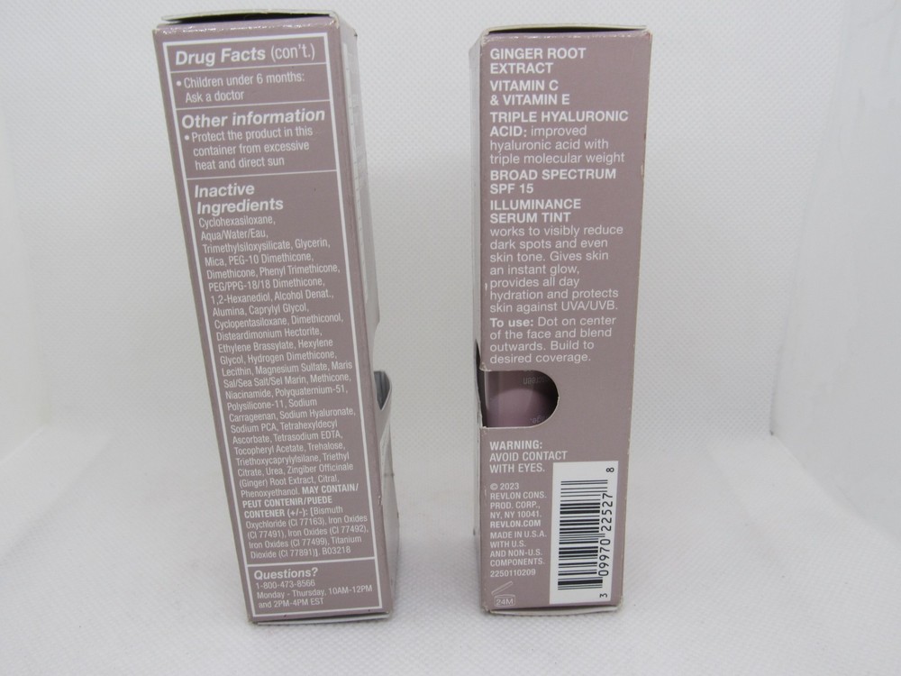 Introducing the NEW Revlon Illuminance Serum Tint in Shade 209 Buff Beige with SPF 15, your secret to a naturally radiant and even-toned complexion. This innovative serum tint combines the benefits of skincare with light, breathable coverage, perfect for achieving that coveted healthy glow. Key Features: Light Coverage: Provides a sheer wash of color that subtly evens out skin tone without feeling heavy or cakey. Ideal for "no-makeup" makeup days or when you want a natural finish. Evens Skin Tone: Formulated to smooth and unify your complexion, reducing the appearance of minor imperfections for a more balanced look. SPF 15 Sun Protection: Infused with SPF 15 (Titanium Dioxide) to help protect your skin from the sun's harmful UV rays during daily wear.