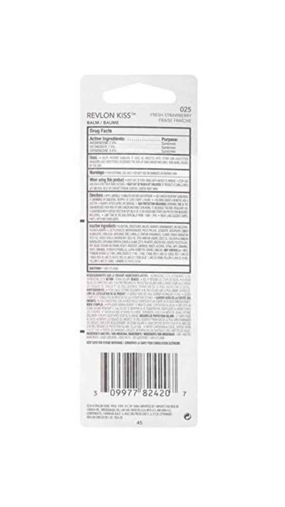 UPC:309977824207Product Line:Revlon KissColor:StrawberrySize:0.09 Ounce (Pack of 1)Formulation:BalmType:Lip Balms And MoisturizersBrand:RevlonProduct Type:Lip Balms And Moisturizersgtin13:309977824207MPN:025Manufacturer:CLACKAMAS RECLAMATION CENTER | FRED MEYER