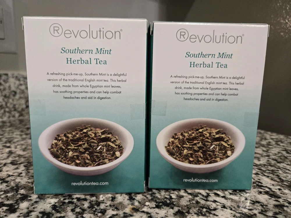 Enjoy the refreshing taste of Revolution Tea's Southern Mint Herbal tea. With 20 tea bags in a pack, each serving 2 people, this tea is perfect for sharing with friends and family. The tea is made in India and is caffeine-free, making it a great choice for those who want to enjoy tea without the added caffeine. The tea's flavor is a delicious blend of mint and southern mint, perfect for any tea lover. The expiration date is 08/04/2025, and the tea is sold in the Pantry food aisle. Order now and experience the taste of Revolution Tea's Southern Mint Herbal tea.