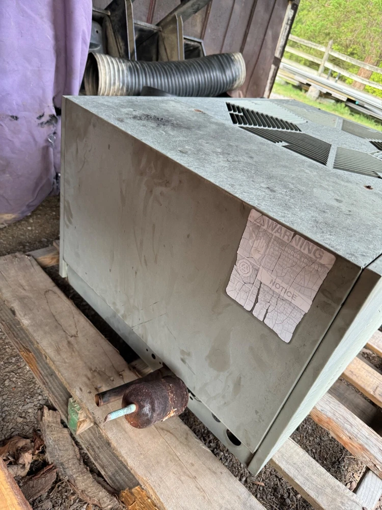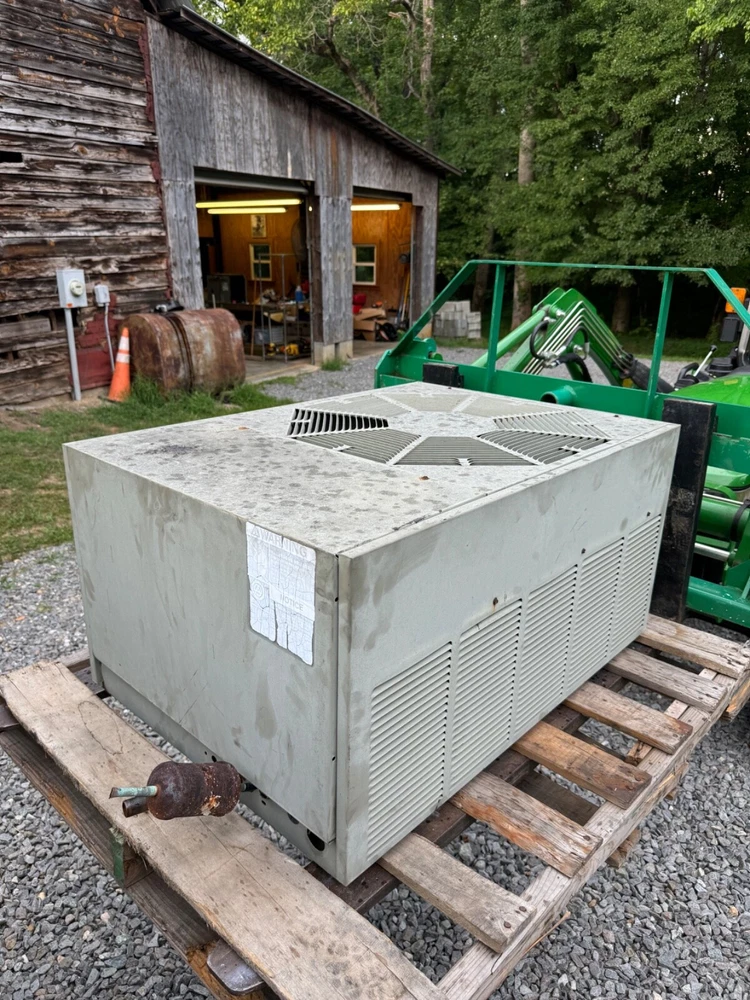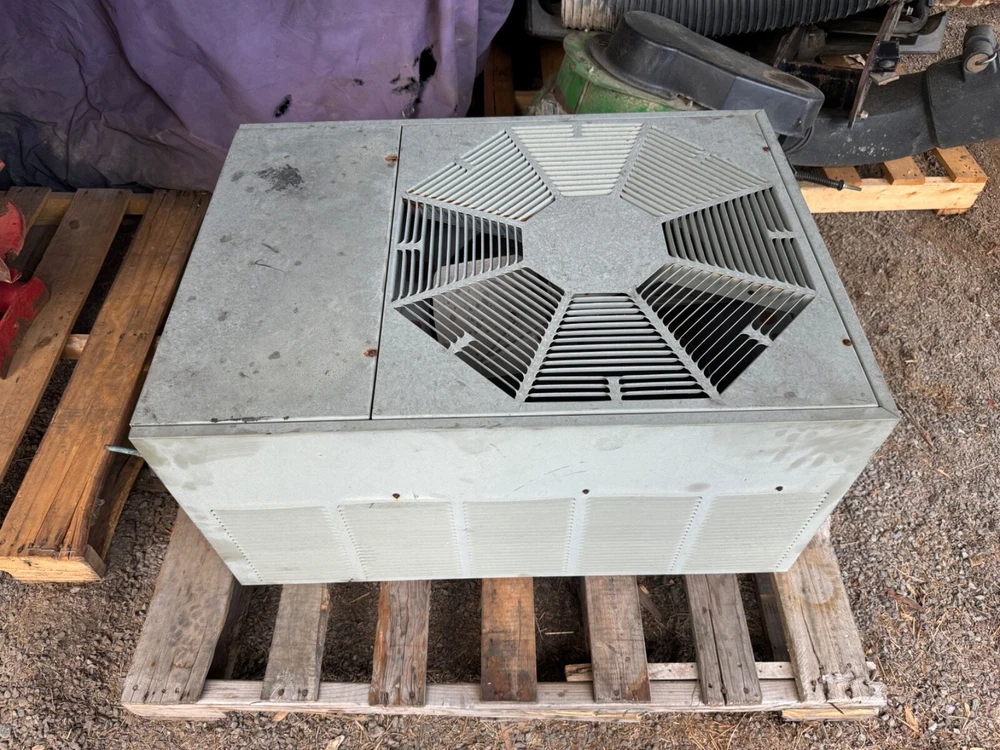 This Rheem Industrial AC Condensing Unit is a reliable and efficient choice for your central air conditioning needs. With a focus on quality and performance, this unit is designed to keep your space comfortable and cool during hot weather. The brand Rheem is known for its durable and long-lasting products, and this unit is no exception. Whether you're in need of a replacement or simply want to upgrade your current system, this Rheem Industrial AC Condensing Unit is a great option. Its compact design and easy installation make it a perfect fit for any business or industrial setting. Don't let the heat get in the way of your productivity - invest in this reliable and efficient air conditioning unit today. This unit was uninstalled professionally and is still in good working condition. Condensing unit only. Was a 2.5 TON complete unit.