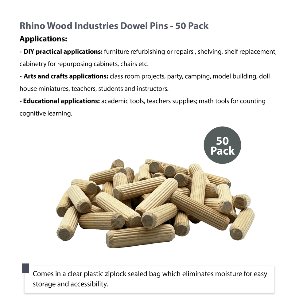 These Dowel Pins are Kiln Dried Birch Wood with Flutes which Eliminate Trapped Air for Superior Fastening. Fluted pins also ensure even glue distribution. Made of Natural Hardwood Harvested responsibly to meet FSC standards. Natural Birch wood, Non Food Safe Beveled Chamfered ends are essential not only making aligning simpler, but crucial in ensuring completion of hand made man made projects. Allows margin of error and compensates if measurements are slightly off Made of Hardwood This product comes in a clear plastic ziplock sealed bag which eliminates moisture for easy storage and accessibility. DIY practical applications: furniture refurbishing or repairs , shelving, shelf replacement, cabinetry for repurposing cabinets, chairs etc. Arts and crafts applications include: class room projects, party, camping, model building, doll house miniatures, teachers, students and instructors. Educational applications: academic tools, teachers supplies; math tools for counting cognitive learning. A great American product.