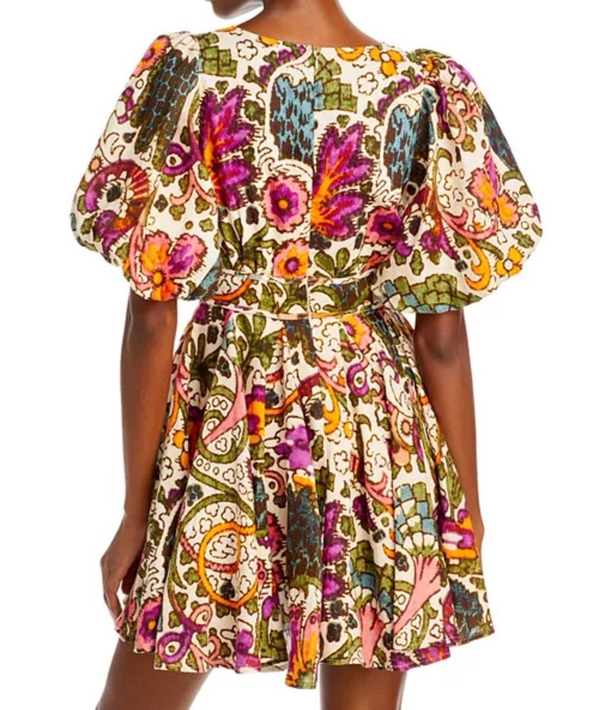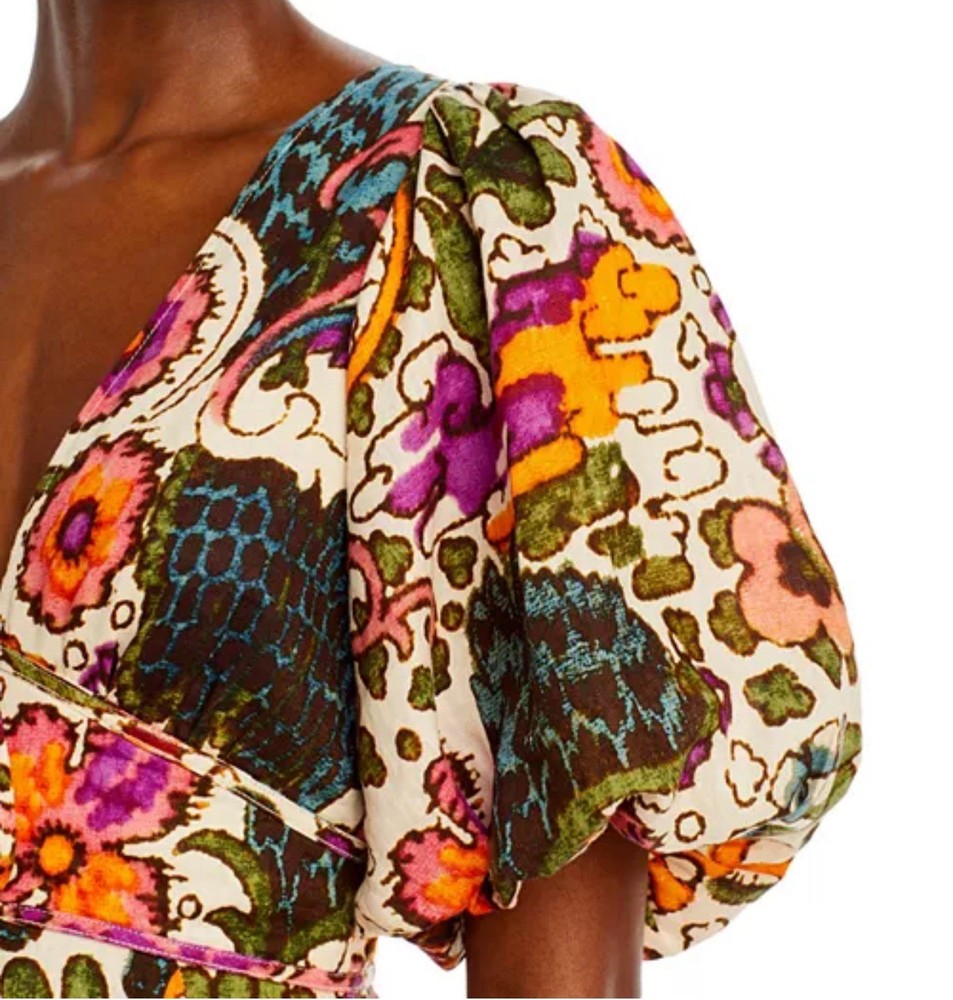 Step into effortless boho-chic style with this stunning Rhode Madeline mini dress in a vibrant multicolor floral print. Perfect for warm-weather outings, this dress combines playful volume with feminine detailing for an eye-catching silhouette. Features: • Brand: Rhode • Style: Madeline Mini Dress • Size: 2 • Color/Pattern: Multicolor abstract floral • Material: • Shell: 100% Linen • Lining: 100% Cotton • Neckline: Deep V-neck with adjustable front tie • Sleeves: Short puff sleeves • Closure: Back zip • Length: Mini • Fit: Relaxed, flared skirt with soft pleats • Lining: Fully lined for comfort and coverage Condition: Pre-owned, in excellent condition. No rips, stains, or flaws. Gently worn. Care Instructions: Machine wash cold with like colors, tumble dry low, or dry clean if preferred.