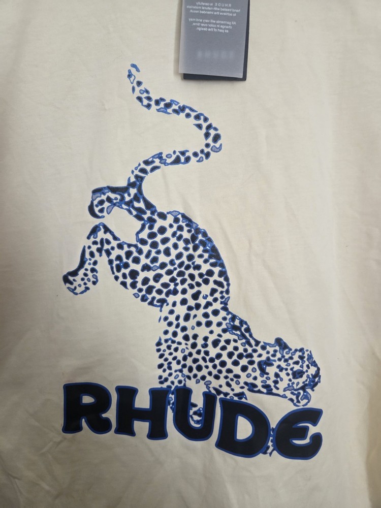 Brand new with tags. Made in USA from 100% cotton. Premium designer tee featuring the signature Rhude leopard graphic on a clean cream base. Measurements (laid flat): Pit to pit: ~21" Length: ~27" Please compare measurements for best fit. Ships fast. Message me anytime with questions!