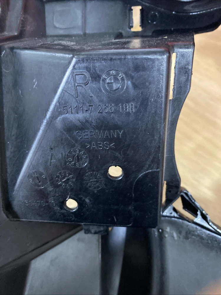 This product is a black Front Support Bracket-Fog Light for the Right side of BMW 3-Series F35 316, 320, 328, and 335 models. It has interchange part number 51 11 7 266 198 and code PeiJ-B50314. The manufacturer part number is 51117266198. It is designed as a Bumper Guide for the front right placement on the vehicle.