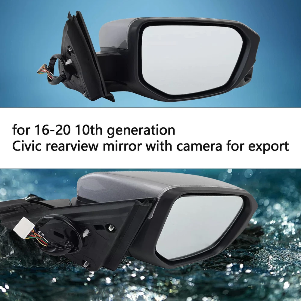Specifications: Condition: 100% Brand new. Color: Lunar Silver Metallic(As the Picture Show) Material : ABS Plastic Decoration type: direct replacement Function:11 Pin+With Camera+Heated+Glass Electric Adjustment+Power Fold+Without Turn Signal Light Placement on Vehicle: Front, Passenger, Right Fitment: For Honda Civic 2016 2017 2018 2019 2020 2021 Features: Waterproof: With reverse polarity protection and open circuit protection,100% waterproof and shock resistant. Made of high-quality OE grade material to stand different weather conditions. Premium materials to ensure maximum life and performance. To provide a clear view of your vehicle. Package Includes: 1x Right Door Wing Mirror Assembly Note: No installation instruction included, professional installation is highly recommended Please check whether this item can fit on your car before purchasing. If you have any questions, please feel free to contact us
