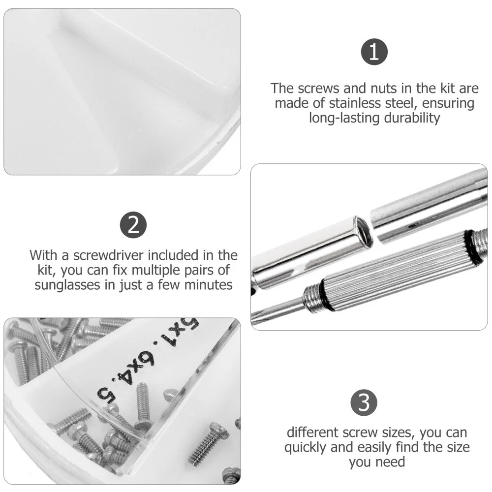Related Hot Sale 20 PCS Stamp Painting Brush Kids Painting Tool Round Sponge Paint Brush US $10.25 Lcd Microscope Stand Maintenance Fixer Lifting Aluminum Alloy USB US $32.28 5 Pcs Right Angle Corner Brace Metal Shelf Brackets Square Thicken US $11.35 elephant pen holder Pen Pot Desk Wood Cell Phone Stand Stationary Holder US $23.99 3Pcs Toe Ring Ring Decorative Rings US $9.45 plastic oversleeve apron kit bib apron Waterproof PVC apron with pockets US $17.18 | Baby | | Books & Magazines | | Business & Industrial | | Cameras & Photo | | Clothing, Shoes & Accessories | | Collectibles | | Computers/Tablets & Networking | | Crafts | | Home & Garden | | Jewelry & Watches | | Cell Phones & Accessories | | Consumer Electronics | | Sporting Goods | | Toys & Hobbies | | Video Games & Consoles | | Health & Beauty | Product Description Collecting listings has surprises Description Are you looking for a professional, yet reasonable eyeglass repair kit? Are you in search of a sturdy, trustworthy tool that can do multiple jobs at once? If yes, look no further! Our glasses fixing kit must meet your needs, this eyeglass repair kit is one of the best choices for you. Features -Color:Silver -Material:Plastic, stainless steel -Size:11.00X2.50X0.50cm/4.32X0.98X0.20in -Size:8.00X8.00X1.00cm/3.14X3.14X0.39in - Versatile Repair Kit: This repair kit is perfect for repairing glasses, sunglasses, watches, , and other precision equipment. - Durable Material: The screws and nuts in the kit are made of stainless steel, ensuring long-lasting durability. - Multiple Screw Sizes: With 12 compartments for different screw sizes, you can quickly and easily the size you need, saving time when installing and replacing screws. - Convenient Storage: The kit comes with a plastic round box that makes it easy to store and organize the screws, so you never have to worry about losing or misplacing them. - Screwdriver Included: With a screwdriver included in the kit, you can fix multiple pairs of sunglasses in just a few minutes. glasses Package includes 1 x screwdriver 120 x screws Contact US 1.If you have some inquires or problems, Please feel free to contact us. 2.We will reply your email within 1 business day (except weekend). 3.When delivery is delayed or items are damaged during delivery, please email us first before you leave feedback. Thank you. People Who Viewed This Item Also Viewed Eyewear Arm Replacement Glasses Parts Repair Kit Rimless Sunglasses Frameless US $9.94 5 Pcs Eyeglasses Cleaner Spectacles Train Track Tape Dropshipping US $5.55 3 Sets Child Giant Magnifying Glass Shatterproof Appliances for Kitchen US $8.35 20 Pcs Silicone Nose Pads for Glasses Bridge Eyeglass Anti Slip Shortsighted US $10.18 Gold Middle Finger Sunglasses for Party & Photo Props US $9.82 Glasses Stand Giraffe Gift Eyeglass Holder Stand Resin Giraffe Figurine US $20.39 30 Pcs White Glasses Non-slip Foot Cover End Tips Sleeves US $6.21 Practical Butane Soldering Iron Tip Soldering Accessories US $9.79 Overgrip Tennis Racket Grips Tennis Grip Grip Tape Elastic Racquet Grips US $13.48 chandelier lamp shades Standing Lamp Round Shade Decorative Tower Lamp Shade US $14.15 4 Pcs Furniture Table Feet Furniture Rubber Feet Sleeve Ladder Foot Covers US $11.29 Paper Vintage Jewelry Box Ring Holder for Storage Organizer US $13.72 2pcs tree cutting tools spiked tree wedges felling dogs to guide treess set US $18.75 20pcs spiral hair Hair Pin Beautiful Fashion Hair Decorations for Girls US $10.99 air conditioner windshield Air Conditioner Wind Board Air Conditioner Vent US $16.58 30Pcs Correction Patch Girls Women Self Adhesive Ear Tape US $9.17 kids copter toy Plane Model Toy Flying Toy Planes Manual Throwing Airplane Rc US $7.18 Pen Carrying Case Portable Pen Bag Multi-function Pencil Bag Pen US $7.35 2pcs Cord Stopper Decking Rope Stopper Stainless Steel End Tip Caps Rope End US $11.78 1 Set Air Discharge Replace Heater Exhaust Heater Exhaust US $35.21 Barber Cape Kit for Men Hair Cutting Cover Hair Cutting Cape with Snap Closure US $20.89 3 Pairs of Glasses Side Eyeglasses Side Shield for Protection US $11.29 18 Pairs No Show Socks Low Cut Socks Women Ondo Socks Low US $33.98 24 Pcs IC Chip Cooler Heat Sink Easy to Install Heatsink Computer US $9.85 On Feb 9, 2025 at 10:30:53 PST, seller added the following information: