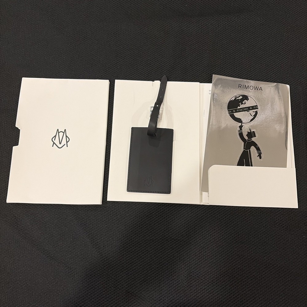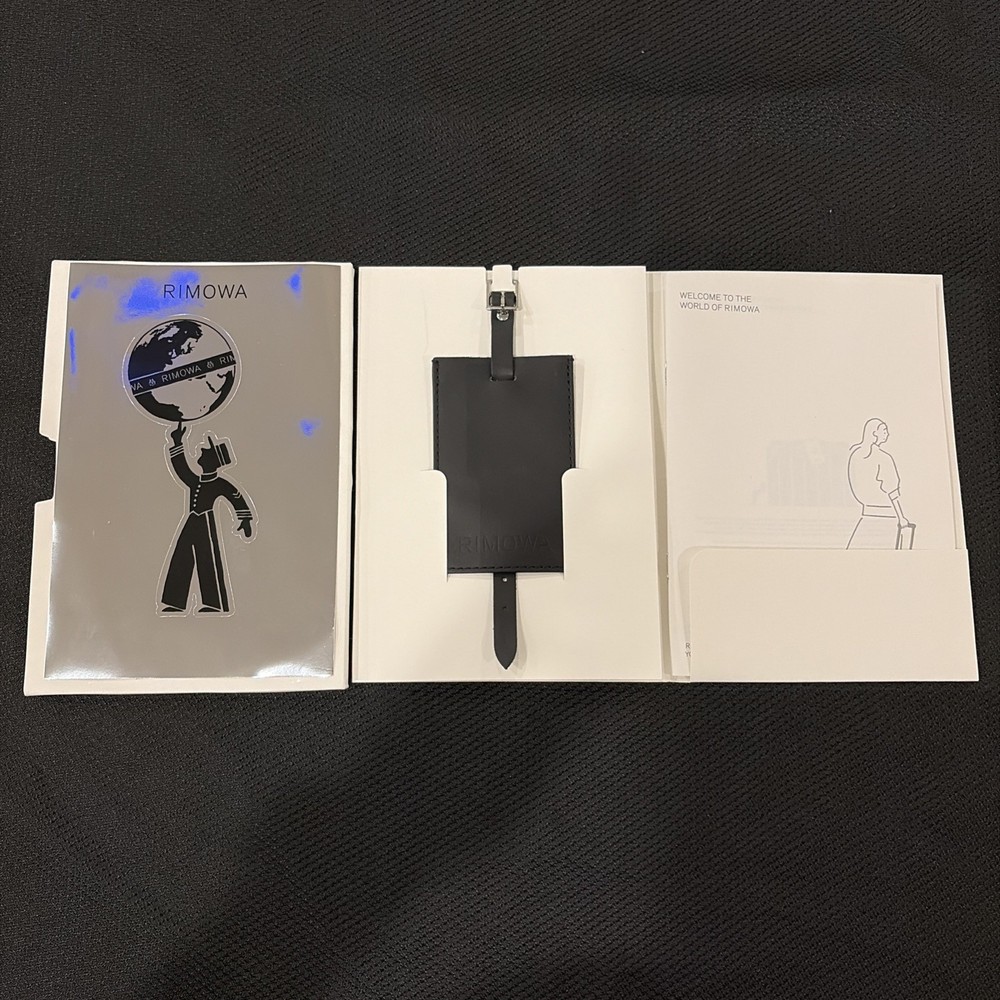 The Rimowa Travel Luggage Tag & Sticker Set is a sleek and stylish accessory designed for travelers. Made from premium black leather, this set includes a luggage tag and stickers, both featuring the iconic Rimowa brand logo. Perfect for adding a touch of sophistication to your luggage while also ensuring easy identification during travel. The set is brand new in its original packaging, ensuring you receive high-quality products for your next journey.