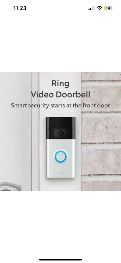 Shows signs of use. Tested working. Missing 3 security screws. Video Doorbell P/N: B08N5NQ869 Manufacturer: Ring HD Video & Two-Way Talk | Motion Detection & Alerts | Night Vision | Customizable Privacy Settings | Built-in Rechargeable Battery | Works With Alexa | Home or away, always know who's there. Meet the original Video Doorbell, now made even better. Enjoy sharper HD video, improved motion detection - designed for your home. All for the same affordable price. Never miss a visitor, or a package. See what's happening at your front door and easily respond if you're away with convenient alerts and features. Real Time Notifications Get notifications when visitors press your doorbell or trigger the built-in motion sensors. Package Alerts Get notifications when a package is detected within the specified zone, an exclusive Ring Protect subscription feature. Quick Replies If you're busy, save time and ask visitors to leave a message with pre-selected Quick Replies. It's like an answering machine for your front door. Clear as day. And night. See, hear and speak to anyone at your front door from your phone or tablet in crisp 1080p HD. With improved image sensors and sharp contrast, you'll never miss a detail - even in the dark. Simple setup in minutes Connect your Video Doorbell to the Ring App and follow the steps to customize your settings. Install the revamped mounting bracket to any surface with the included hardware. Line up the slots on the bracket with the holes in your doorbell and click into place. Real-Time Notifications Receive real-time notifications on your phone and tablet to stay in-the-know when anything happens at home. Live View Get real-time video and audio with the Live View button. Need to let a guest in? Lock and unlock a compatible smart lock with a simple tap. Connected Devices Connect select Ring devices to see what's happening and control them all from a single dashboard. Security & Privacy Control Control Center allows you to view, control, and customize important security settings. Safety Alerts Stay connected to your community with real-time crime and safety alerts from your neighbors and local public safety agencies. Specifications: UPC: 842861114454 SKU: 1066829798 Brand: Ring MPN: B08N5NQ869 Product Type: Video Doorbell Camera: Yes Wireless LAN: Yes Product Color: Satin Nickel Connectivity Technology: Wireless Power Source: Battery, Solar, AC Virtual Assistant Supported: Alexa Smart Connect: Yes Height: 5 Width: 2.4 Depth: 1.1 Terms and Conditions Domestic (US) Orders Domestic orders are shipped within 2 business days from receipt of payment. Please be aware that your order may be processed on the following business day after you check out. Domestic shipments are sent via standard UPS or Fedex service. Standard shipping service may not be available to some addresses. Additional charges may apply. We do not provide expedited shipping or order processing. Orders to PO boxes, Alaska, Hawaii, Puerto Rico, US protectorates, and military addresses require an additional 3-4 business days of processing time before shipment. International Orders You are purchasing a product designed for use in North America. The power and transmission requirements may be different then in your local country, please make sure to follow all applicable use and safety regulations. Import duties, taxes and charges are not included in the item price or shipping charges, they will be billed to the recipient. These charges are usually collected by the shipping company at the time of delivery. On customs documents we do not mark merchandise price below the sale price, or mark items as "gifts". Government and shipper regulations prohibit such behavior. International orders are shipped via various air cargo carriers which are selected by our warehouse when your order is processed. International orders require 3-4 business days of processing time before shipment. Shipments to PO boxes must be sent via postal services. Additional charges may apply. Heavy or over-sized shipments may not be eligible for export to some countries or incur additional charges. Please contact us before placing your order if you require combined shipping for multiple items. Returns, Refunds, and Cancellations We stand by the items we sell and will issue a full refund including freight charges on any defective or ship damaged item. Please inspect your item as soon as it arrives, we only accept reports of shipping damage within 14 days from delivery. All returns must be shipped to the appropriate facility for processing. Before returning a product, please contact us to receive return instructions. Items must be returned within 30 days from purchase. Refunds may take up to 21 days to be issued after your return is received. When you submit your payment, your order will be automatically processed. We may no longer be able to change or cancel your order. After the order is received, we cannot update your shipping address address. The order will be shipped to the address you submit with your payment. Scroll down and click on "ask a question" if you would like to send us a message. The product's description is automatically generated with information from manufacturer catalogs and other content providers. Please excuse any image and typographical errors.