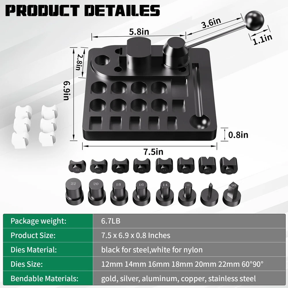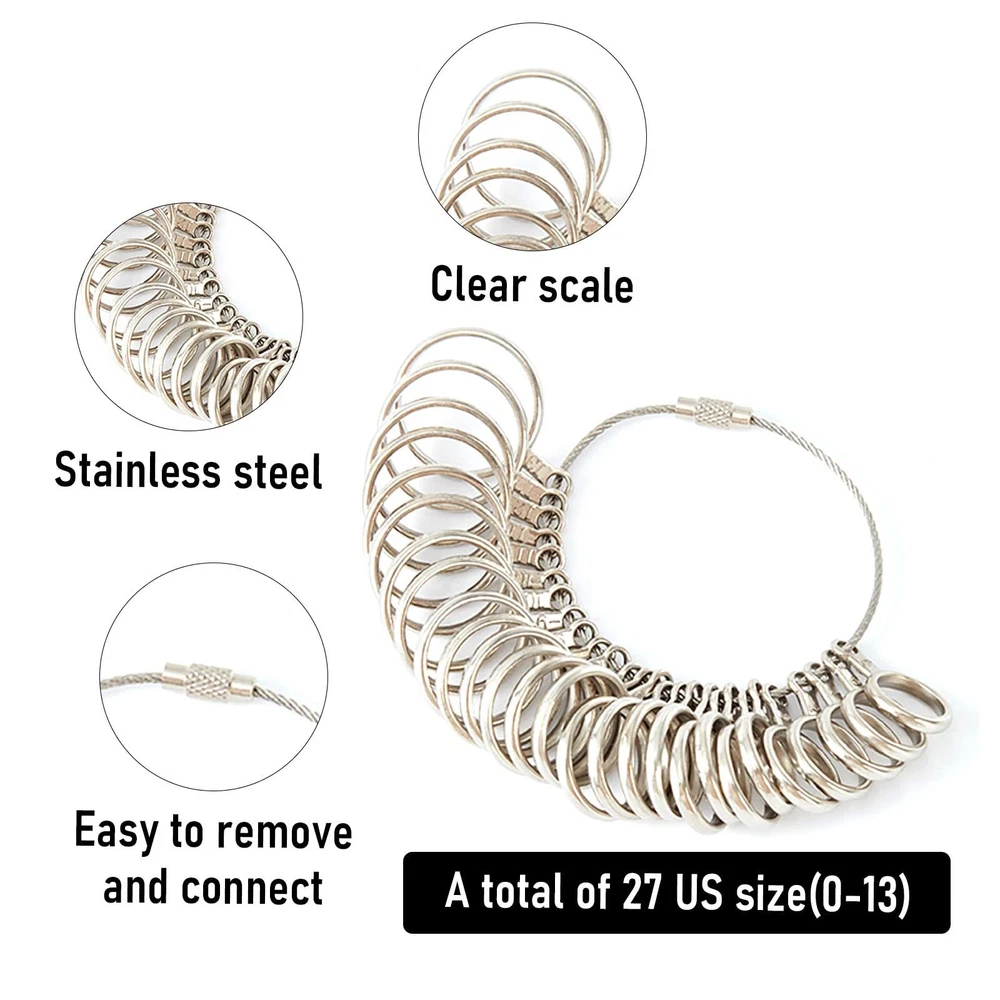 【What You Will Get】The spoon ring making kit comes with dual-head rubber hammer and Ring Sizer Measuring Tool(including Metal Finger Sizer Measuring Ring Tool and Aluminum Ring Mandrel 4 Measurement Size), equipped with a set of six white nylon dies, US&UK ring size gauge,polishing rods and cloth, which may be needed when you are making rings.Perfect gift for craft lover. 【Upgraded Rod &Ring Bender】We upgraded the rod of the ring bender (diameter 0.8cm increased to 1.0cm) to avoid the rod breaking, so that spoon ring bender can have a longer service life.The ring bending tools are made from solid steel and then hardened to 45-50 HRC.each steel post and die(Six matching precision columns and dies of sizes 12, 14, 16, 18, 20, and 22 MM, as well as dies of 60 and 90 degrees and a convenient organizer base in matching form. )are black oxidized, no corrosion for life. 【4 Size Ring Sizer Measuring Tool】The ring bender tool for spoon rings specially designed for measuring rings comes with 4 sizes: US sizes of 1-15 (Specific to quarter size), European size (CU 41-76 ), Japanese size (m/m∮1-34), FR Standard Size 1-36. which can meet the measurement needs of different sizes of fingers. 【Exceed Higher Quality】The 27pcs ring sizer gauge set is made of stainless steel material for long time using, Each ring is laser engraved with USA Sizes 1-13 including 1/2 half size increments. The flexible cable with a screw connection for you to open if needed.Other ring making tools are used for different size measuring, sanding and polishing jewelry to a shine and sparkle. 【Wide Application】The jewelry ring bender tool can bend rings, spoon rings, earrings, and so on. It is suitable for jewelry DIY, jewelry repair, jewelry design, home hand-made,or jewelry stores. we recommend this ring bending tool for soft metals less than 3mm thick. And the whole set is popular both in professionals and beginners. Very easy to use that time saving and labor-saving. Note: Ring bending tool must be fixed directly to your workbench by using screws or if you have a fixed bench vice, the ring bender can be placed on top of the vice jaws.