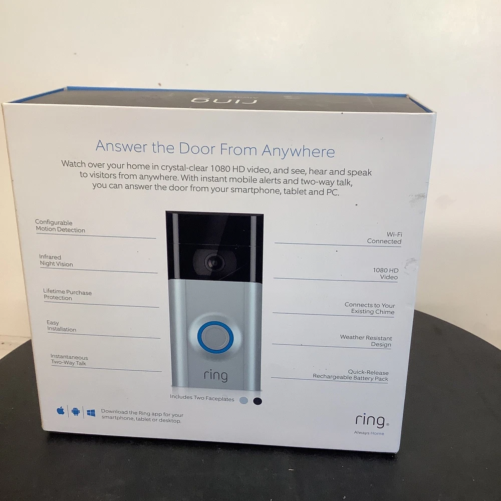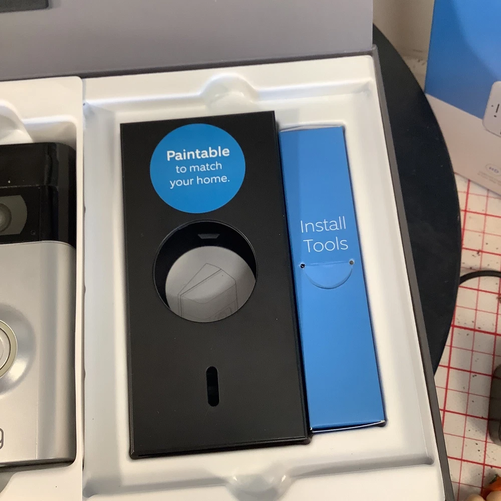 Upgrade your home security with the Ring Video Doorbell 4. This modern door video system comes in a sleek silver color and is suitable for installation in shops, schools, and homes. The doorbell is powered by either batteries or hardwired connection, providing flexibility in your choice of power source. The Ring Video Doorbell 4 features a plastic button with a round shape and is equipped with a variety of features, including waterproofing, lighting, melody/tune, and a portable bell/chime. It also has wireless connectivity for easy installation and is compatible with Nickel material. This doorbell system is perfect for anyone looking to enhance their home security and has a stylish appearance. Take note, this is an open box. Everything looks to be there see photos.