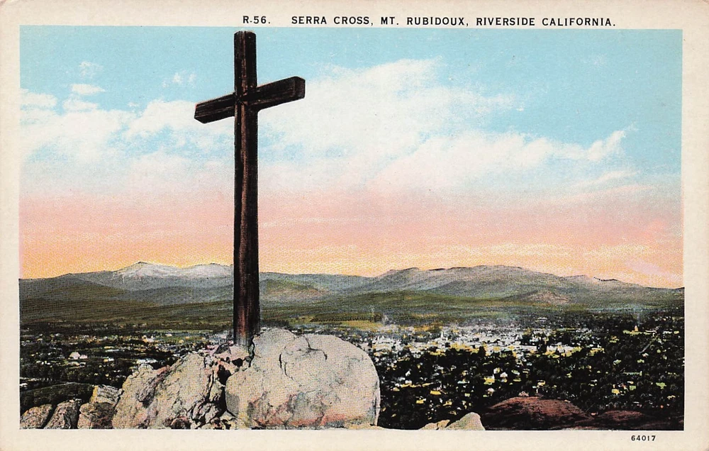 Riverside CA Mt Rubidoux Father Junipero Serra Cross Religious Vtg Postcard E32