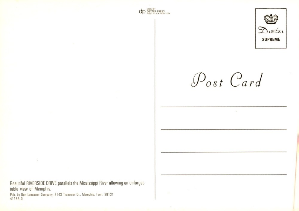 Riverside Drive, Memphis, Mississippi River, skyline, scenic view, Postcard