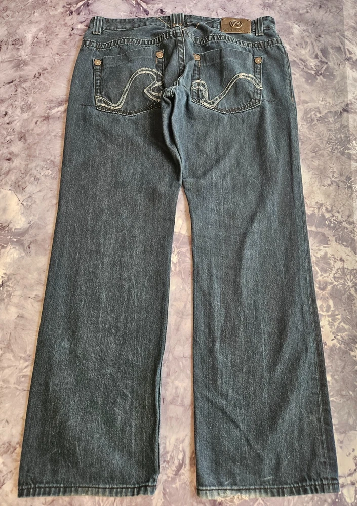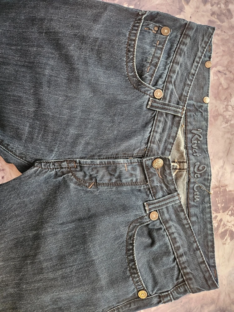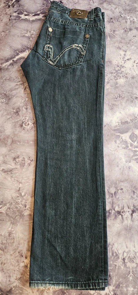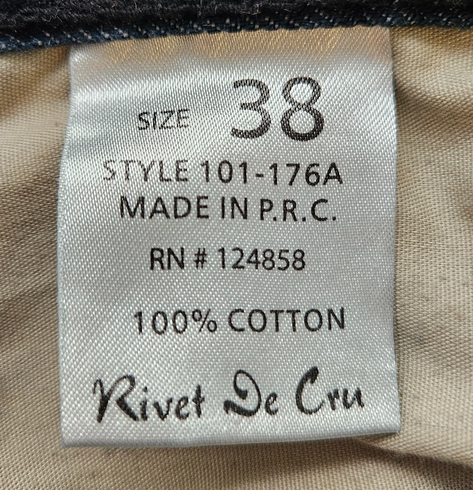 Rivet De Cruz Men's Jeans Size 38x32 Dark Blue Pre-Owned. They are in good condition. On the Right leg in the back has a little wear. I took a picture of it. If you have any questions, please reach out to me.