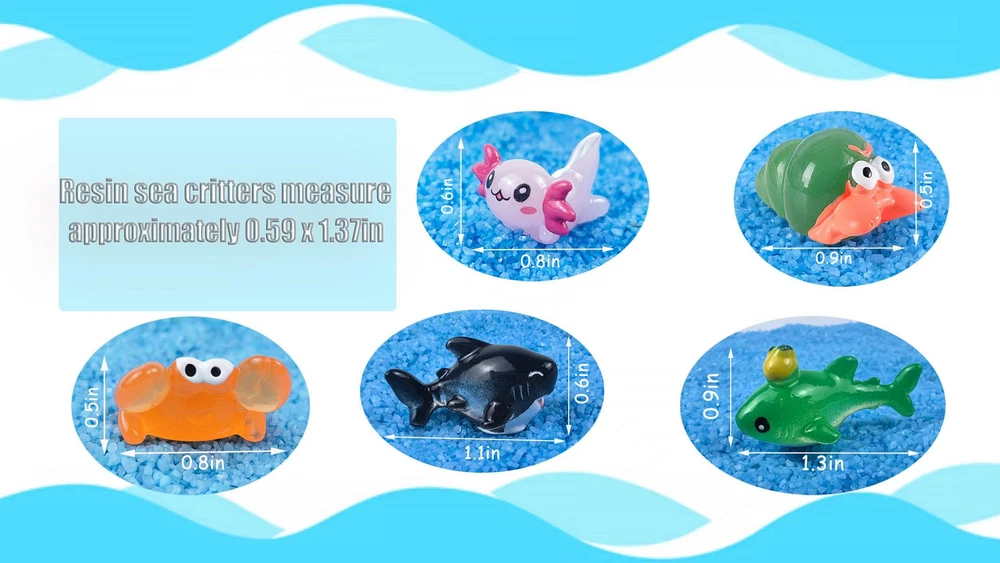 Product Contents: The Tiny Sea Animals Figurines comes with 36PCS of mini ocean figurines, in 18 various ocean animal styles and 2pcs for each style, cute and delicate, rich in quantity and perfect combination, can meet your different needs. Premium Material: The Tiny sea resin animals are made of premium resin, cute appearance and bright color, lightweight and easy to carry, smooth and safe to use, they can be used for a long time. Cute Shapes: There are various Miniature Ocean Theme shapes, such as cute whales, sea hares, octopuses, jellyfish,hermit crab, etc. Different Marine animals and suitable mini size are great for decoration. Ideal Gift: The Tiny Sea Animals Figurines are cute and vivid designed, exquisitely carved and polished, a great gift choice for yourself, friend and family members while birthday, party and festival. Wide Application: These Marine Animals Figurines are suitable for DIY and nice decorations, such as dollhouse, fish tank, aquarium, mini landscape, garden, office, home, and more, bring endless fun and add more charm to your life.