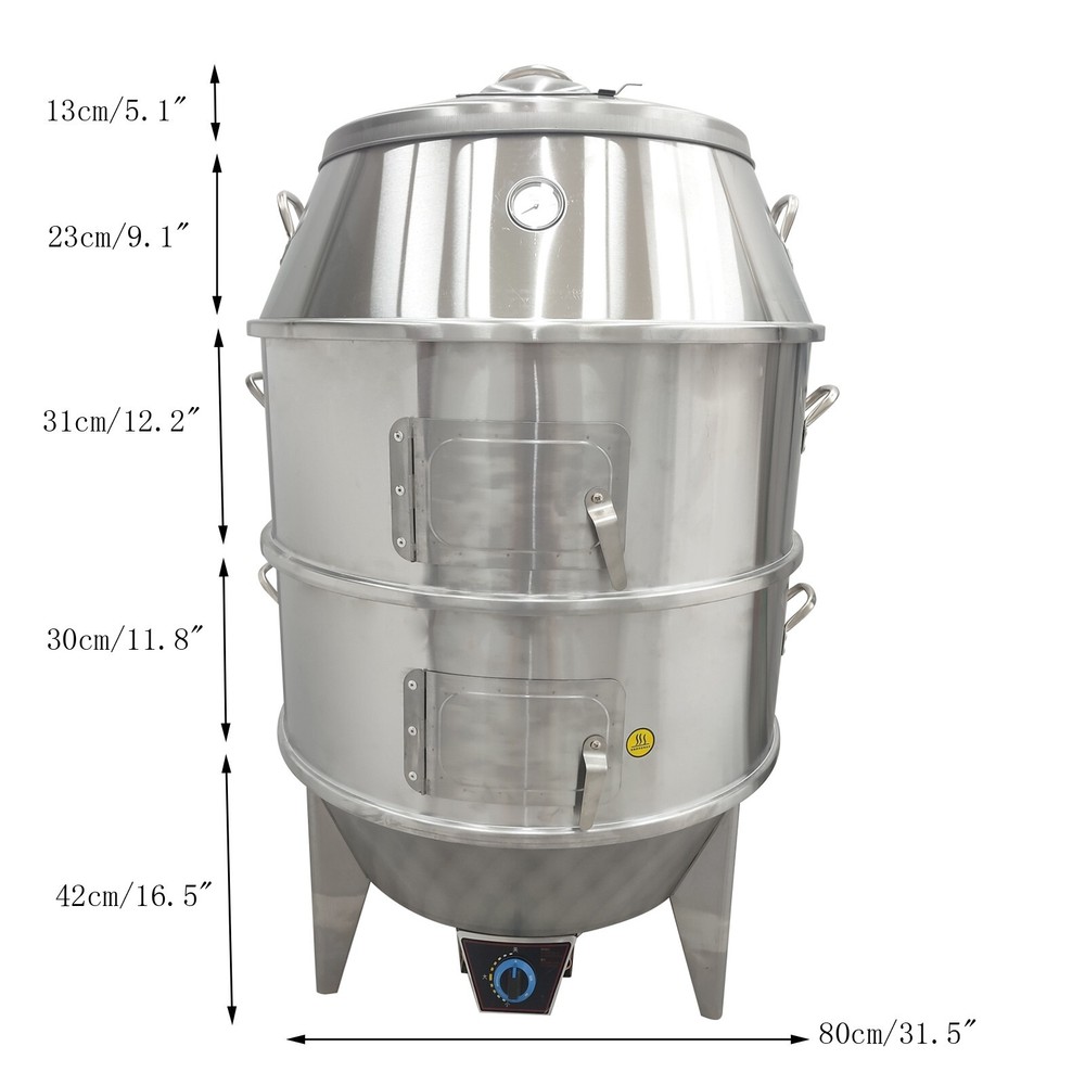 Liquefied petroleum gas roast duck oven Roast duck oven is a piece of special equipment used for roasting food. It is made of stainless steel plate and has the characteristics of high temperature resistance and corrosion resistance. It has a unique design, easy operation, low gas consumption, and high efficiency. Roast duck ovens are widely used in restaurants, canteens, and individual businesses, especially suitable for stalls with high population mobility. The selection of an efficient, energy-saving, and environmentally friendly roast duck oven will greatly improve the production efficiency and dish quality of the store. Parameters: Heating method: liquefied petroleum gas Material: 410 stainless steel Material thickness: 1.0mm Furnace diameter: 80cm Furnace height: 140cm Capacity:15-18 ducks weighing 2.2lbs can be roasted once, and 8-10 ducks weighing 4.4lbs can be roasted once.(for reference only) Gift: 3 stainless steel grill nets, 15 duck hooks, 20 duck pins. Features: 1. Double layer stainless steel with glass fiber insulation cotton, good insulation effect, energy-saving. 2. The furnace body is equipped with a thermometer to intuitively understand the temperature inside the furnace. 3. Both furnace bodies are equipped with observation windows. Open the window and observe the baking process. 4. Three layers of dense baking nets, made of 410 stainless steel material, with independent hanging rings and strong load-bearing capacity. 5. Central tube ventilation design with ventilated furnace cover, convenient for smoke exhaust and energy saving. 6. Secure handle, nail pulling process, integrated molding, beautiful and durable. 7. Oil water separation design, more hygienic and easy to clean. 8. Three-legged high chassis design. The air fluidity is good. Attention: Water is added to the base in the baking process until it reaches the oil leakage port. The oil will float on the water and flow out from the side oil outlet, which can be recycled with a plate. Open the bottom outlet valve when draining water. Easy to clean. Item Number: 220640 Shipping & Handling ▲ Default shipping cost or free shipping service is only for the lower 48 United States by UPS Ground or USPS. Other areas or needs other shipping ways, please contact us. ▲ 6 months' warranty for the machines, not for the consumables. We stand behind our products all the item, so even if your warranty period has expired, you can still seek for service or technical support from us with low cost. Handling Time: Shipping is usually made in 1-3 business days after payments cleared. Orders are processed from Monday-Friday; Not on the weekends & public holidays. Sales tax / Customs duties: Collected by ebay. Return / Refund Returns & Exchanges ▲ All returns should be made within 30 days of delivery date. Items must be in unused condition, with all original materials included with the shipment. A partial refund may be applied for opened or damaged items, depending on the condition. ▲ Items returned under the buyer’s remorse: The return shipping fee must be covered by the buyer; The original shipping cost will also be deducted from the refund. 15-30% restocking fee of the items purchase price will be charged. Defective & Damaged Products ▲ If product was received damaged or not as described, please send us some pictures or videos, so we could well understand your problem, then solve them for you ASAP. Besides, it's much helpful for us to claim with UPS, remind our related department to pay much more attention to packaging later on. Hope for your understanding. On Mar 4, 2025 at 18:55:23 PST, seller added the following information: