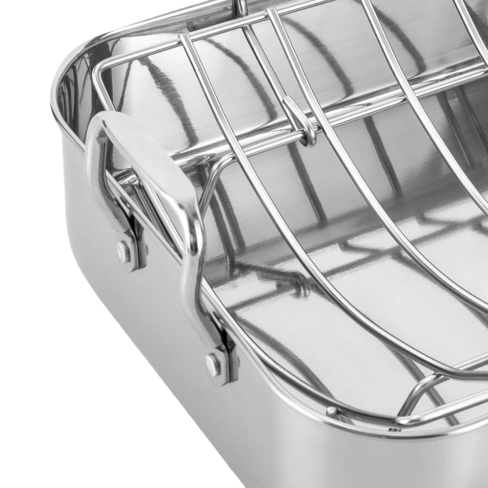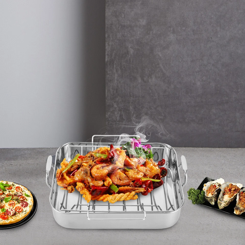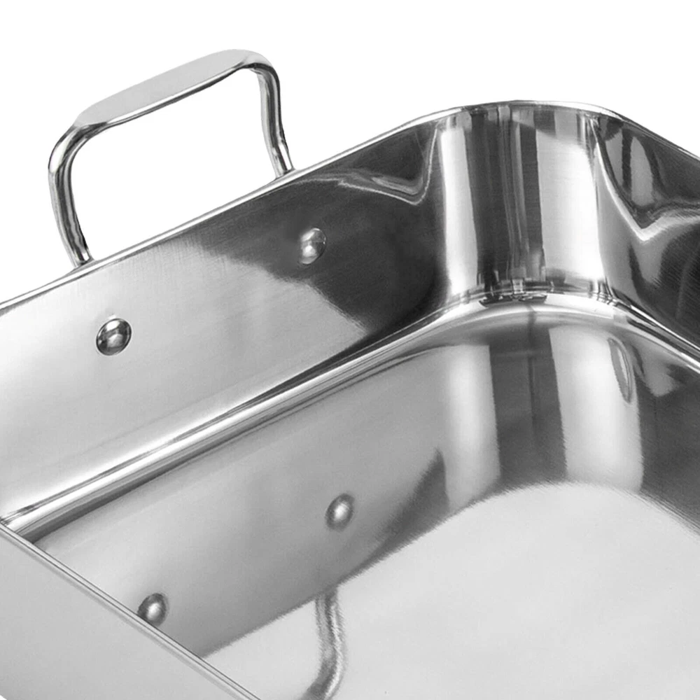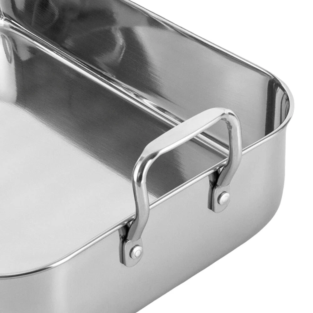 Specification Color: Silver Shape: Rectangular Material: Stainless Steel, Iron Process: Polished, Chrome Plated Maximum Safe Temperature: 375℃/707℉ Assembly Required: No Gross Weight: 2.5kg/ 5.51 lbs Net Weight: 2.3kg/ 5.07 lbs Package Size: 46*33*12 cm/18.11*12.99*4.72 in Rack Size: 35*29*8.4cm/13.8*11.4*3.3in Rack Feet Height: 2.5cm/1in Rack Handle Length: 16.5cm/6.5in Product Base Size(L*W): 40.6*30.5cm/16*12in Product Opening Size(L*W): 42*31.5cm/16.5*12.4in Product Total Height: 14cm/5.6in Pan Height: 9.4cm/3.7in Handle Height: 4.6cm/1.8in Distance Between Handles: 44.5cm/17.5in Package Included 1 * Stainless Steel Roasting Pan 1 * Rack Roasting Pan with Rack 16.5 Inch Stainless Steel Rectangular Turkey Roaster Pan *Description of yybshop02*** *Description of yybshop02** Payment Delivery details Terms of sales About us Contact us Payment We accept ebay payment 。 Fees such as import duties, taxes are not included in the item price or shipping costs. These charges are the buyer's responsibility. Delivery details Shipping: 2-9 working days to: USA Terms of sales We maintain high standards of excellence and strive for hundred percent customer satisfaction. Feedback is very important to us. We hope that you contact us immediately before you give neutral or negative feedback, so that we can address your concerns. It is impossible to address issues if we do not know about them! About us Your satis faction is our ultimate goal. We work hard to earn your trust and future business. Our certified technicians have tested each item before shipping. The unit comes with 1 year limited warranty on all manufacturing defects. a) If you receive a defective item, you may return it or ask for a discount. Please contact us within 14 days after you receive the package. b) What you returned must be intact and in its original packaging as re? u. Customer is responsible for shipping costs of the returned item. c) We will cover the cost of shipping back t with the shipping rate indicated in the registration page. We will send you a new unit or refund the full payment you paid. Thank you. Contact us Business Hour Business Hour: Monday To Friday: 8:30 AM to 5:00 PM (Beijing China time) Due to time zones, our reply to your questions may not be immediately. But within above working time, we will reply your email within 24 hours. If it's non-workdays, please kindly be patient and wait till Monday. Please contact us with ebay message. Please feel free to contact us if you have any questions. Monday To Friday: 8:30 AM to 5:00 PM (Beijing China time) Due to time zones, our reply to your questions may not be immediately. But within above working time, we will reply your email within 24 hours. If it's non-workdays, please kindly be patient and wait till Monday. Please contact us with ebay message. Please feel free to contact us if you have any questions. 1Feature: Exquisite appearance,Durable material Material Stainless Steel Set Includes Rack Color Silver Type Roasting Pan Features Double Handle Shape Rectangle Item Length 16.5 in Stove Type Compatibility Electric EAN dose not apply UPC dose not apply Brand SENDERPICK MPN Does not apply