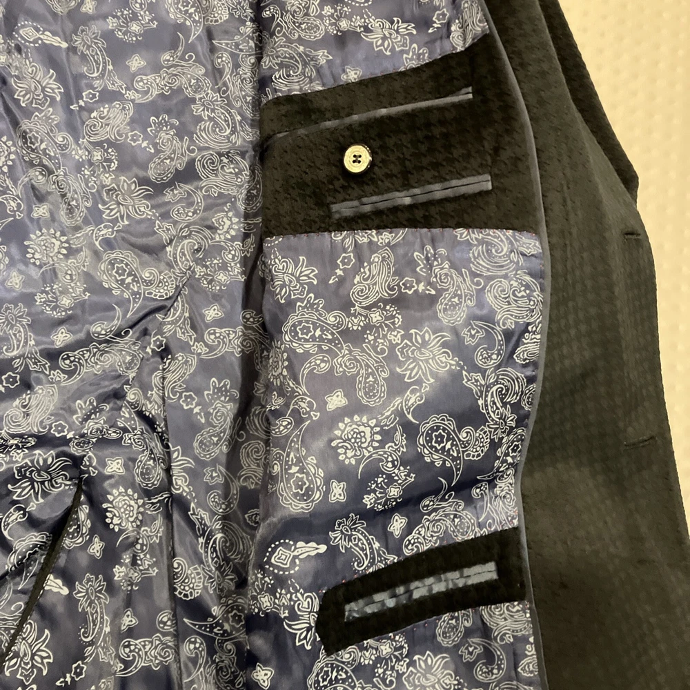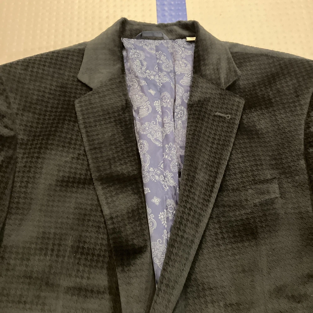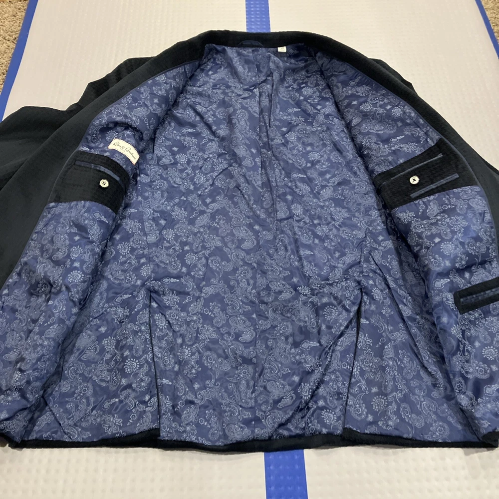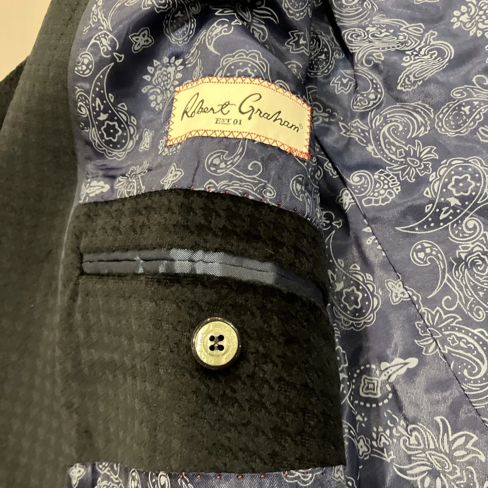 Robert Graham Men's 2-Button Blue Velvet Polyester Blazer Diamond 46R Jacket