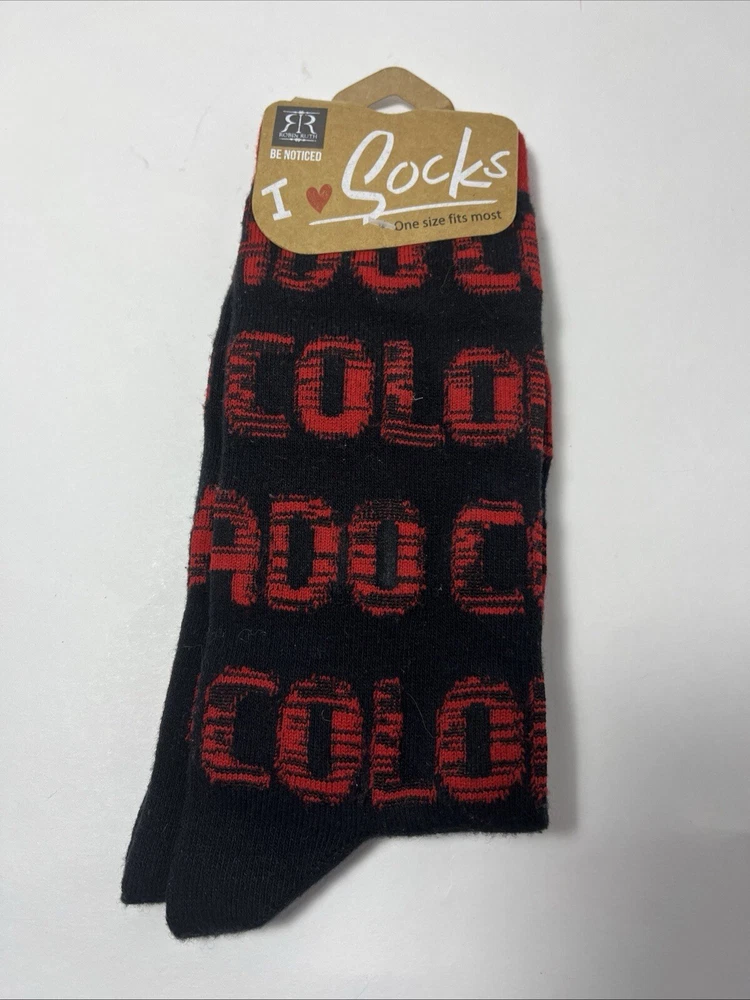 Black socks with COLORADO letters in red by Ruth Robin-new