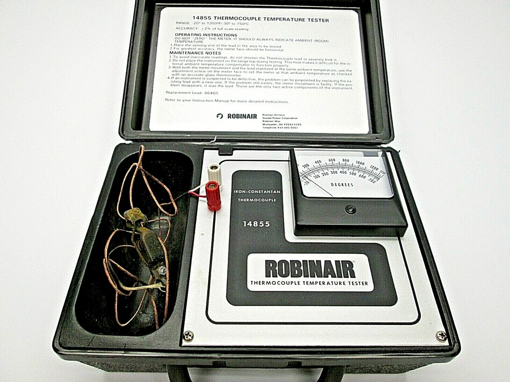 Item Details Genuine Robinair : 1- 14855 Thermocouple Temperature Tester Condition This is a used item. This only comes with what is pictured. Shipping We ship domestic orders via UPS ground or USPS. We ship international orders via USPS Priority International. Please be aware there may be delays by Customs and Duties or Local Taxes imposed and we are not responsible for any costs associated with them. Return Policy 30 day return policy on DOA(dead on arrival) items. Communication Feel free to contact us with questions regarding this or any other ebay listing. Buyers Note We accept no responsibility for the correct application or installation of this item. This item is to be installed and maintained by qualified individuals. We claim no expertise in the use of this or these items. By purchasing this item you agree to hold us only liable for the purchase amount. P26