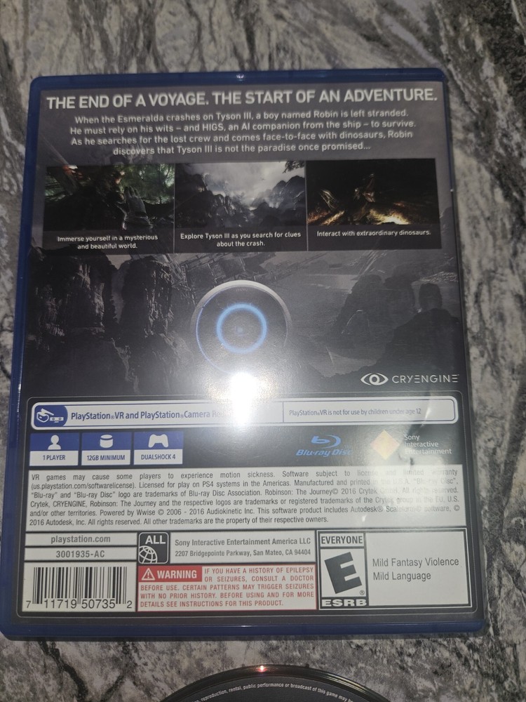 Publisher: Crytek Game Name: Robinson The Journey VR Platform: Sony PlayStation 4 UPC: 711719507352 gtin13: 711719507352