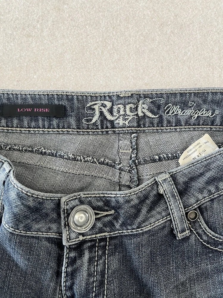Rock 47 by Wrangler Women's Size 11/12 x 36 Low Rise Blue Jeans Denim Straight!! Good used condition. Fast shipping!! cowgirl, western, boots, equestrian, festival, concert, country, rock