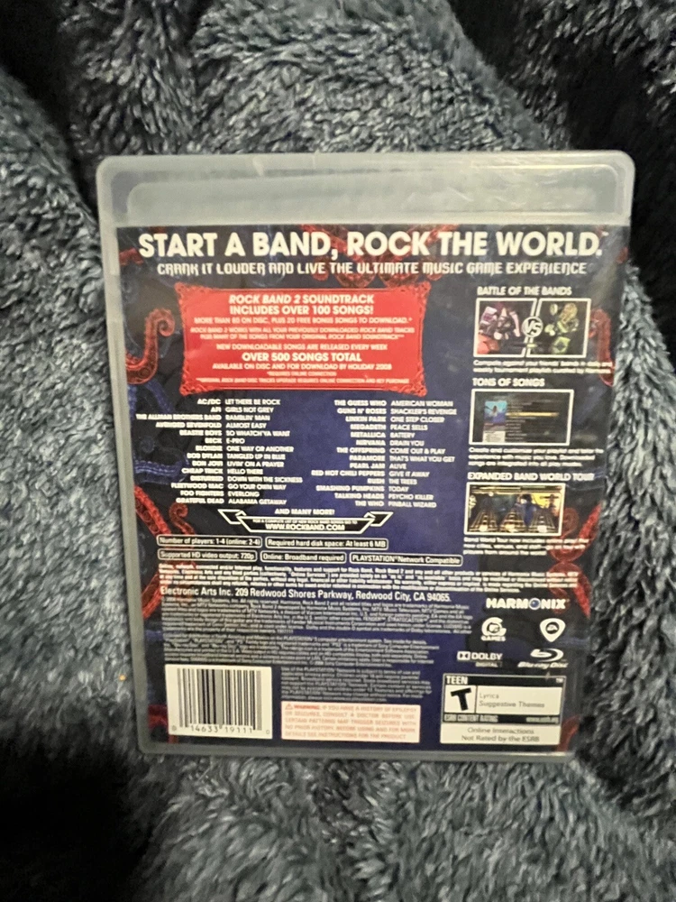 Game Name:Rock Band 2Rating:T-TeenUPC:0014633191110Release Year:2008Region Code:NTSC-U/C (US/Canada)Features:Complete Edition, Manual Included, MultiplayerPublisher:MTV GamesGenre:Rhythm and MusicMPN:014633191110Platform:Sony PlayStation 3Country/Region of Manufacture:United StatesVideo Game Series:Rock Band Seriesgtin13:0014633191110