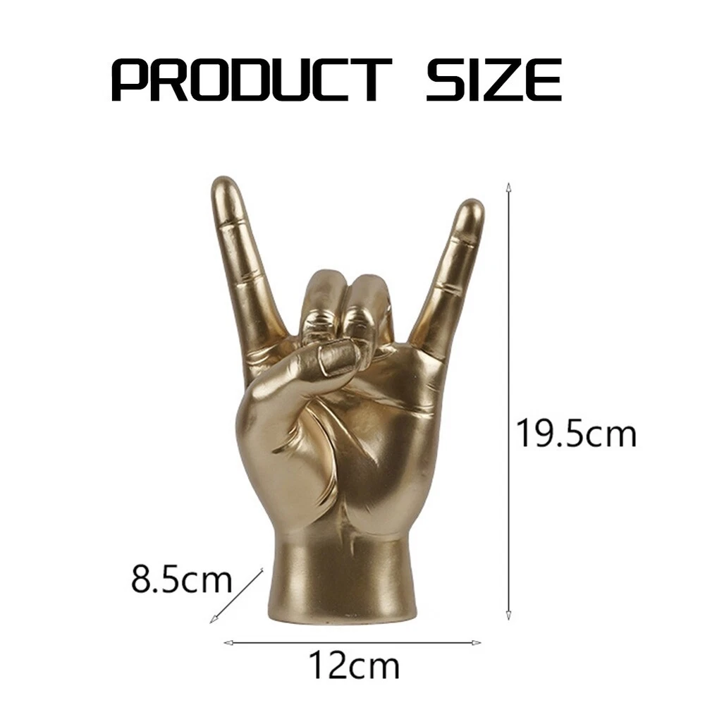 Rock Hand Gesture Statue Rock Music Art Craft Finger Sculpture for Rock6667 [Wide Applications]Hand Gesture Figurine is widely suitable for home decor, office, cafe, restaurant, hotel, apartment, dorm, Music lovers, bar decorations, music festivals, rock lovers, birthday gifts for friends.. [Proper Size]Finger Sculpture is in size 12cm x 8.5cm x 19.5cm/4.72 inch x 3.35 inch x 7.68 inch [Premium Material]Rock music Hand Gesture Statue is made of high quality resin material, with fine texture, and delicate. []Finger Gesture Statue is also an exquisite gift choice for families and friends on birthdays, holidays, festivals, etc. [Novelty Design]Rock music Hand Gesture Sculpture is designed with elegant lines and detailed carving, light luxury and . Specification: L Hand size: 12 x 8.5 x 19.5cm Material: Resin colour: gold Package Contents: 1 x Rock music Hand Gesture Statue