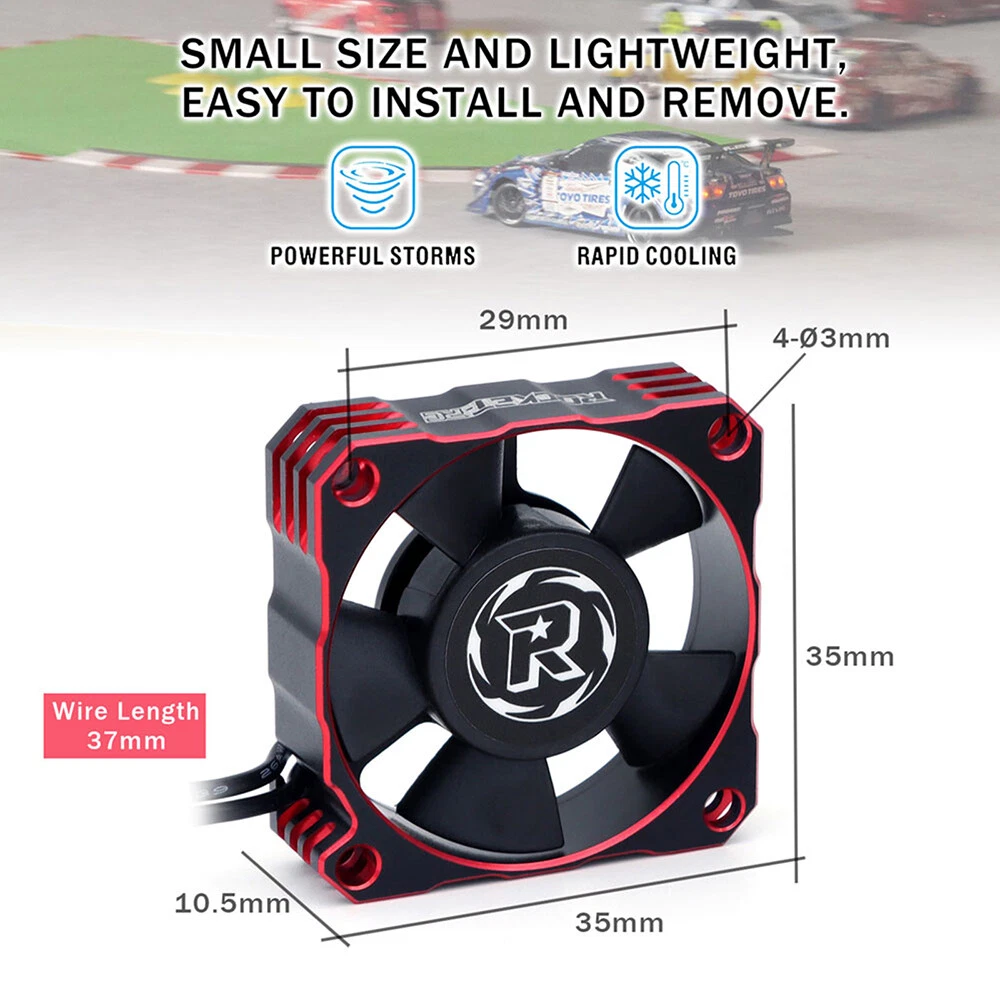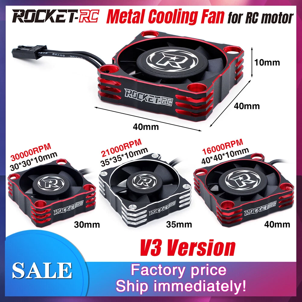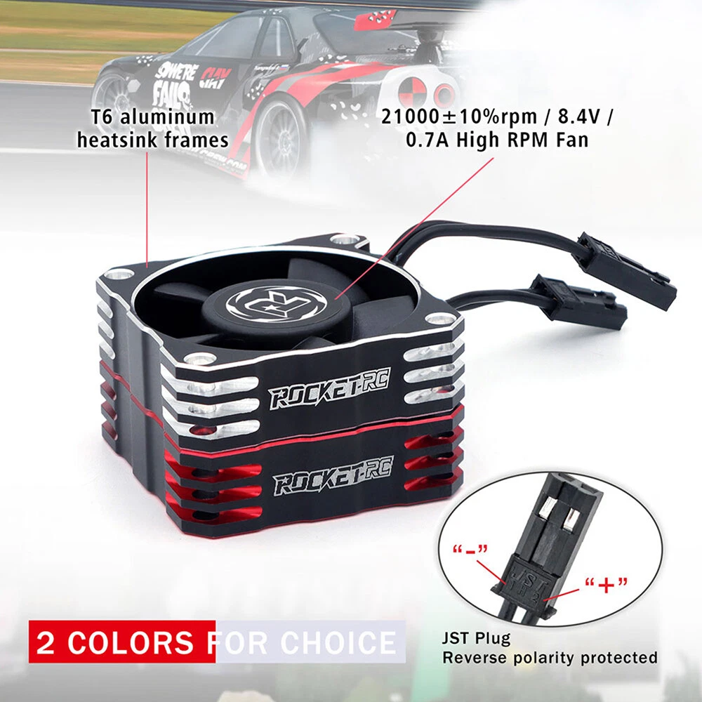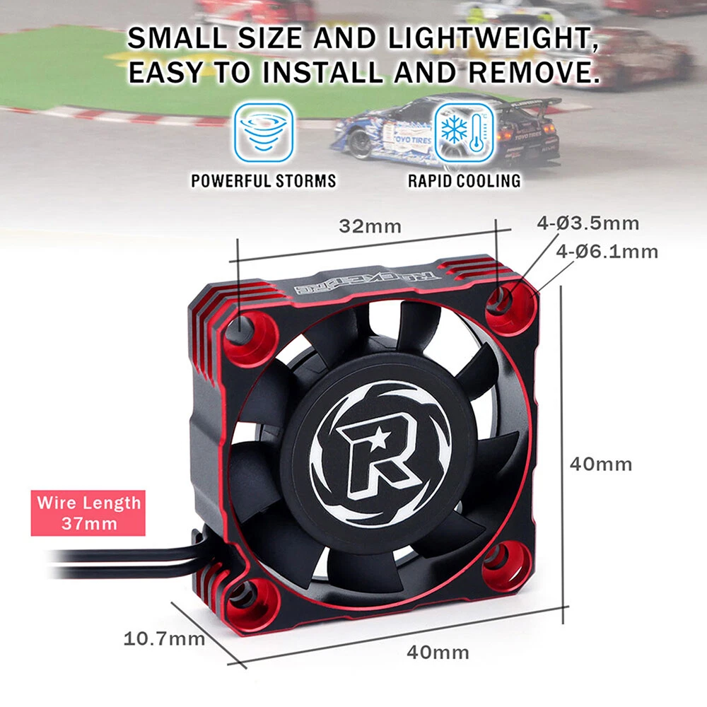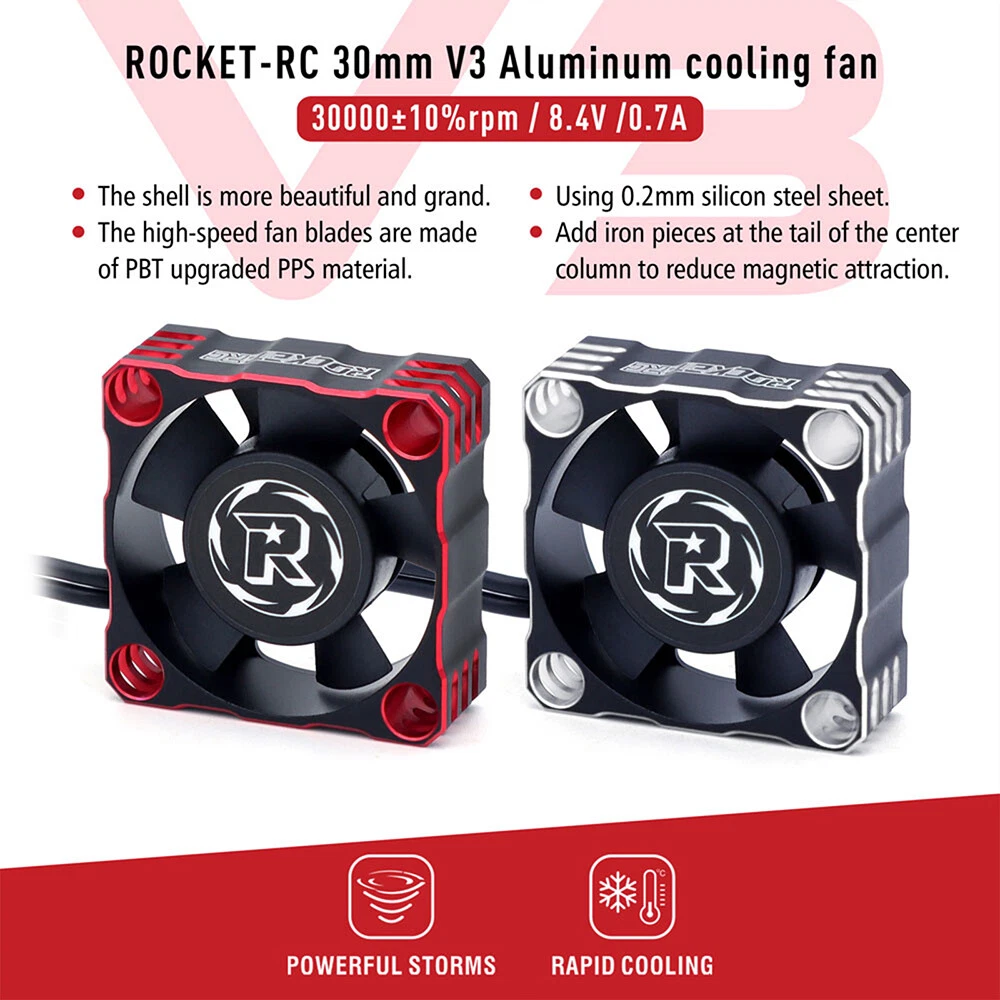 Rocket-RC Metal Cooling Fan 30/35/40mm 8.4V 16000/21000/30000RPM V3 Version T6 Aluminum Frame for RC ESC Motor Heat Dissipation Features: 1. Made of PBT upgraded PPS material, durable for long time use. 2. Add iron pieces at the tail of the center column to reduce magnetic attraction. 3. Small size and lightweight, easy to install and remove. 4. The speed can reach up to16000/21000/30000RPM,excellent heat dissipation effect to protect the motor. 5. This motor cooling fan adopts 45mm black JST connector,easy to install and use. 6. The cooling fan wiring has positive and negative poles,and the wrong connection will not work, safe and secure. Description: This 30/35/40mm Metal Cooling Fan Adopted to T6 Aluminum Heat Dissipation Frame,8.4V 16000/21000/30000RPM Whilst Using Just 0.7A For RC ESC Motor Heat Dissipation, Small Size and Lightweight, Easy to Install and Remove,it can protect your motor better. 30x30x10mm ESC Specifications: Product name: V3 Aluminum Cool Fan Material: Metal Color: Red&Black; Silver&Black Size: 30x30x10mm Current: 0.7A Voltage: 6-8.4V RPM: 30000RPM Plug: JST Scale: 1:10 Wire Length: 34mm Weight: 16.5g 35x35x10mm ESC Specifications: Product name: V3 Aluminum Cool Fan Material: Metal Color: Red&Black; Silver&Black Size:35x35x10mm Current: 0.7A Voltage: 6-8.4V RPM:21000RPM Plug: JST Scale: 1:10 Wire Length: 34mm Weight: 19.7g 40x40x10mm ESC Specifications: Product name: V3 Aluminum Cool Fan Material: Metal Color: Red&Black; Silver&Black Size:40x40x10mm Current: 0.7A Voltage: 8.4V RPM:16000RPM Plug: JST Scale: 1:10 Wire Length: 34mm Weight: 27.8g Fan Extension Cable Specifications: Material: 26AWG Silicone Lenght: 90mm/170mm Terminal: 2P JST/3P JR Weight: 13g Package contents: 1 x Metal Cooling Fan(choice with you) Note: Only the above package content, other products are not included. 1.Due to the difference between different monitors,the picture may not reflect the actual color of the item. We guarantee the style is the same as shown in the pictures. 2.Due to the manual measurement and different measurement methods, please allow 1-3mm deviation.Thanks! Before purchase: 1.All the goods are ready stock, we will arrange the shipment at once if we receive the order. 2.Please read the item description, if you have any question, do not hesitate to contact us. 3.No warranty,if you receive a defect item,please contact us at once with item picture. 4.Use the vouchers for more saving. After purchase: 1.If you are satisfied,please express your use feeling. 2.Please contact us before you are going to give us bad review. We are helpful and will solve the problems. If you receive a defect item,please contact us at once with item picture or video.