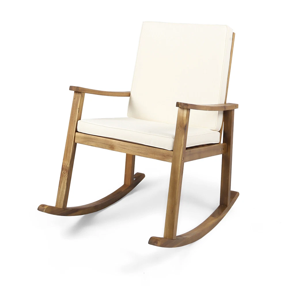 This rocking chair is a dream! The acacia wood is sturdy yet stylish, and the smooth rocking motion is so relaxing. Perfect for unwinding on the patio—comfortable, elegant, and built to last. Love the cream color and coastal vibe!