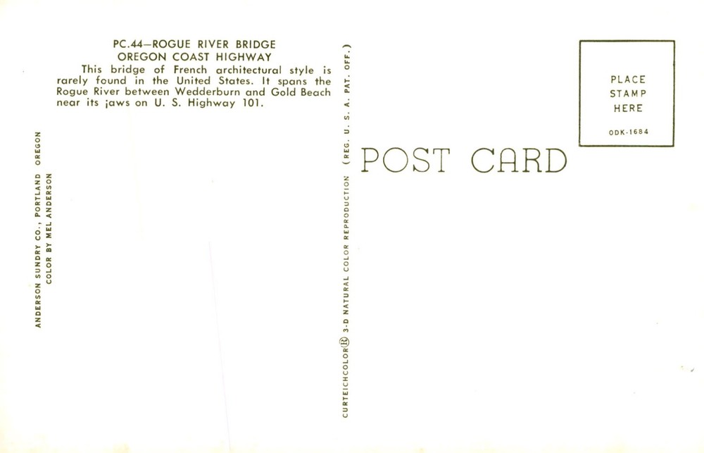 The French architectural style Rogue River Bridge is a rare find in the US, spanning the river near Wedderburn and Gold Beach on Highway 101.