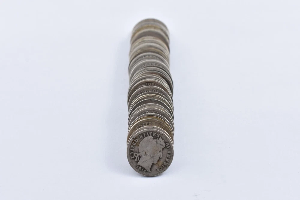 Roll 1892-1916 Barber 90% Silver Dimes Roll 50 Coin Lot Collection This is a stock image, the quality of the item you will receive will be equal to or better than the one in the photo. Satisfaction guaranteed. Date range is based on the date range these coins are taken out of - not all dates will be included. See photo for condition example. .U-DME #33-2959 [4.5z] Our Policies: Customer Service Priority #1 - We have several employees that work customer service FULL TIME. We take customer service very seriously and will work hard to ensure you have an exceptional shopping experience. We are here to help! Have questions? Message, email, or write. We will work hard to answer all of your questions. Reputation: Your satisfaction matters. We want you to come back and we want you to tell everyone else about what a great experience you had with us. If you ever have a problem, we want to take care of it! Some days we ship over 1,000 packages out, so from time to time, we do make a mistake. Please note: We are NOT mind readers, so unless you tell us about your problem, we cannot fix it. Returns: We offer 30 day, no questions asked, hassle free returns (bullion sales exempt - 3 day returns only) . Message or call us to get a Return Authorization Number , which will ensure there is no delay in refunding your money. Items must be in their undamaged original packaging otherwise a 15% restocking fee or refusal of return may occur. Authenticity: We stand behind all of our items 100%. Their authenticity is guaranteed indefinitely. We’ve been on eBay since 1999 and don’t plan on going anywhere. Payments: We prefer Paypal but also accept Check. We would appreciate payment as soon as you are done purchasing. We understand sometimes it will take time to surf all 20,000 coins we have, however, please make payment within 7 days of purchase, or if need be let us know if you need longer. Refunds: The fastest way to get a refund is to message us to get a Return Authorization Number, otherwise your refund may be delayed greatly (we sometime ship 1,000 items a day, so it is sometimes difficult to match up information when not RA is included. Shipping: We have a professional staff of shippers, literally all they do is SHIP FULL TIME. Most orders go out within 24 hrs of payment (Except Weekends & Major Holidays). They will be carefully packaged to ensure your item(s) arrive quickly and safely. Please note that regardless of how many coins are purchase, all shipments invoiced at under $25.00 are subject to a $2.95 shipping and handling fee. Shipments invoiced $25.00 and are over are applicable for free shipping. Grading: A pictures worth a 1000 words. And our pictures are better than any words we could use to describe our coins. Grading is a subjective ‘art’ we can always give you our opinion; however, we try to photograph coins as accurately as possible to give you all the information you need to form an opinion. We’ve spent 1000’s of hours working to perfect the perfect photo. Our goal is to photograph it in a way that allows you to see what the item will look like when it is in front of you. We do not enhance or touch up any of our photos. Read our feedback, you’ll see people love the quality we send people. - M Barr Coins Powered by SixBit's eCommerce Solution