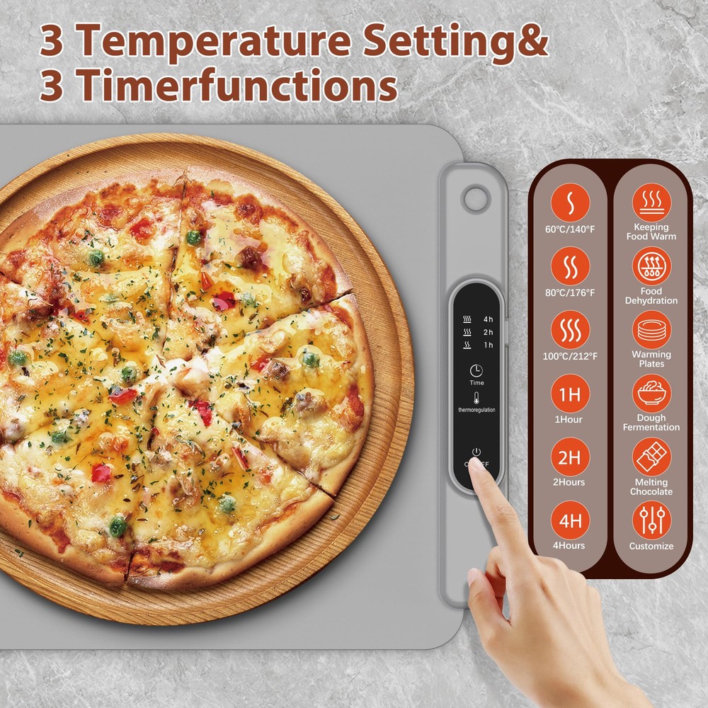 Warming Mat for Food - Full Surface Heating, Rollable Food Warming Mat & Premium Silicone Nano-Material,3 Temperature Settings,Food Warmers for Parties, Suit for Family Gatherings,Holidays Description Features: Heating Plate for Food - Keep Dishes Warm with Adjustable Temperature, Energy Efficient, Non-slip Surface, Choice for Hot Plate for Food Warming. Rapid Heating: Equipped with advanced heating elements, this heating plate warms up quickly to keep your dishes at the perfect temperature in no time. Even Heating Distribution: Ensures uniform heating across the entire surface, preventing hot spots and keeping every dish equally warm. Multiple Temperature Settings: With adjustable temperature controls, you can choose the ideal heat level for different types of dishes. Safe and Durable: Made of high-quality materials, it is built to last and features safety protections like overheat protection. Product Details: Color: Grey Material: silica gel Special Feature: Automatic Shut-Off Brand: SynWave Heating Elements: 6 Product Dimensions: 25.5"D x 15.5"W x 1.5"H Manufacture Year: 2024 Manufacturer: SynWave Color: Grey Material: silica gel Special Feature: Automatic Shut-Off Brand: SynWave Heating Elements: 6 Product Dimensions: 25.5"D x 15.5"W x 1.5"H Manufacture Year: 2024 Manufacturer: SynWave Item Weight: 4.29 pounds Country of Origin: China Item model number: RCB-003 Date First Available: October 28, 2024 Handling We will ship all orders within 3 business days of payment. Delivery We do not ship outside of the Continental US. Feedback We take our reputation seriously, we buy and sell online, so we understand the value of trust. If you are unsatisfied with your order, please contact us and we will work with you to resolve it to your satisfaction.