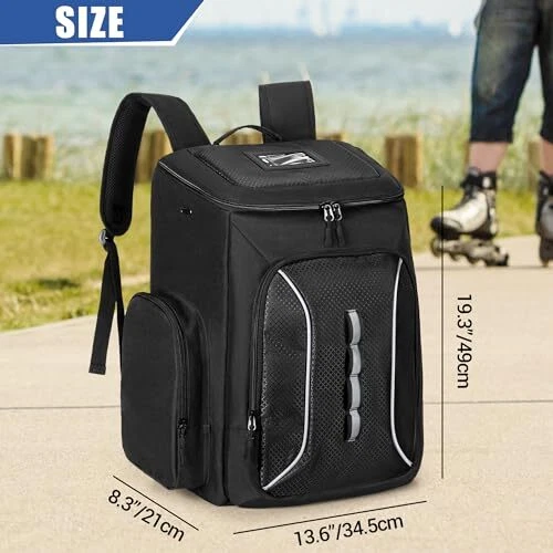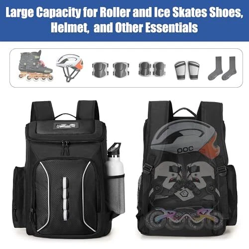 Return Policy Fast Delivery Trusted seller Roller Skate Bag with Large Capacity, Ice Skate Bag Backpack Holds Shoes Up to US Men Size 13, Figure Skate Bag with Multiple Pockets for Inline, Figure, Quad, Speed, Hockey Skating Product Description Wrapping Padding: The back shoe pocket with wrapped padding and breathable hole, which provide ample room and excellent protection for roller/inline/figure skates shoes (up to US men size 13) Multiple Pockets: The top pocket of this roller skate bag can hold your helmet; front and side pocket can store your protective gear; another side mesh pocket can hold your water bottle High Material: This ice skate backpack is made of 600D nylon material; the two-ways zipper have easy access to the bag; ID card window design on the top allows you to find your bag quickly Comfortable Carry: This figure skate bag with padded shoulder strap and cushioned lumbar support which provides comfortable carrying experience; you can also carry it to anyw with its top handle Widely Usage: Storage and carry all kinds of skate shoes and essentials, used for roller skating, inline skating, quad skating, ice skating and hockey skating (13.6 x 8.3 x 19.3 inches) Shipping Returns Payment Shipping Shipping is FREE to all addresses other than APO/PO boxes in the lower 48 states. All our stock ships from US-based warehouses. Shipped via USPS or UPS (depending on location and package weight) Unless stated otherwise, all orders will ship within 24-72 hours of your payment being processed. Check our feedback to see the great reviews of FAST shipping we offer. Returns Seller does not accept returns Payment We currently accept payment via eBay managed payments only. Once payment is cleared, we will dispatch your shipment within 1-3 business days. Please refer to the "Shipping" tab for more information regarding shipping speed to your destination.