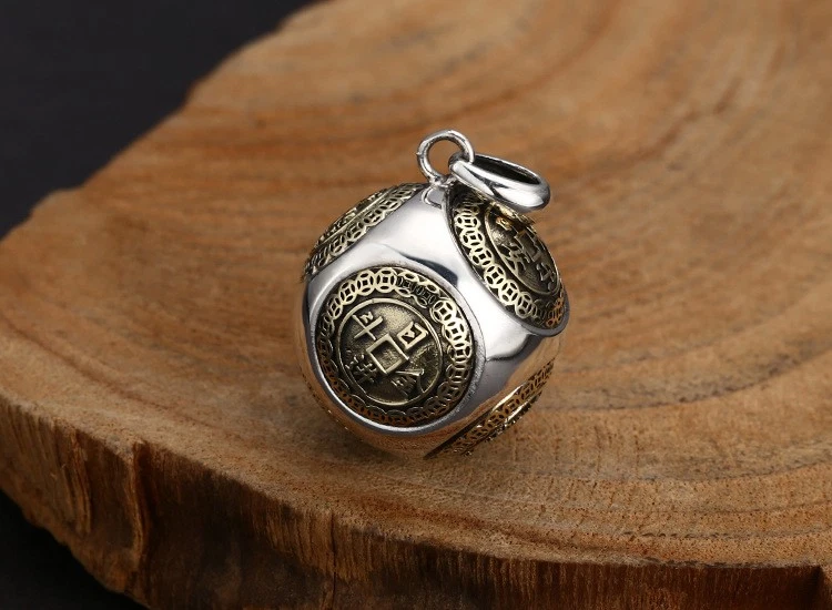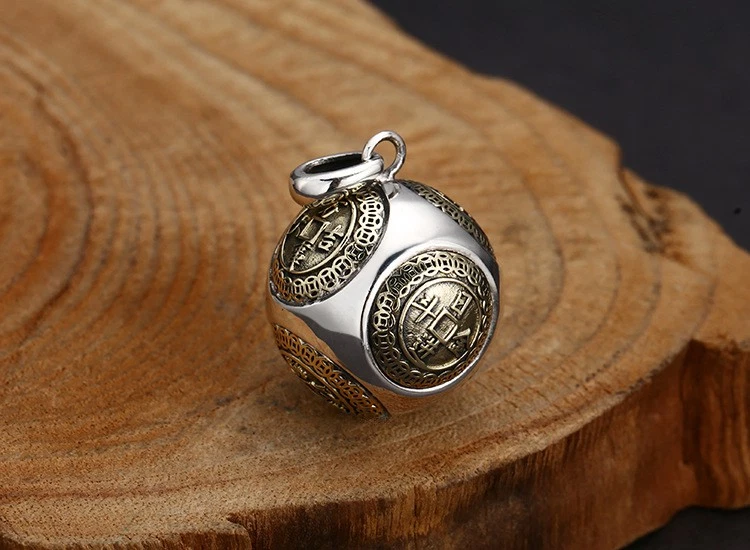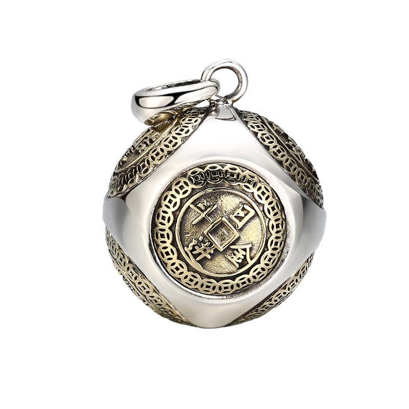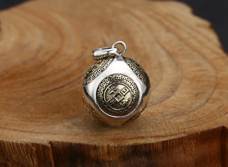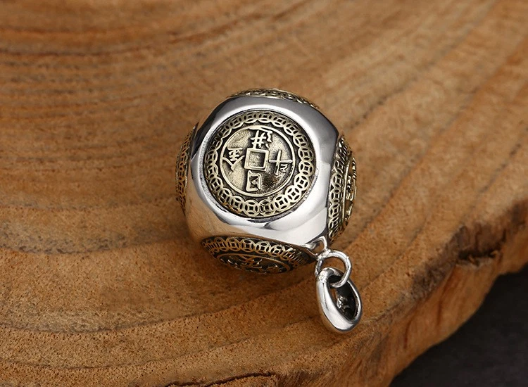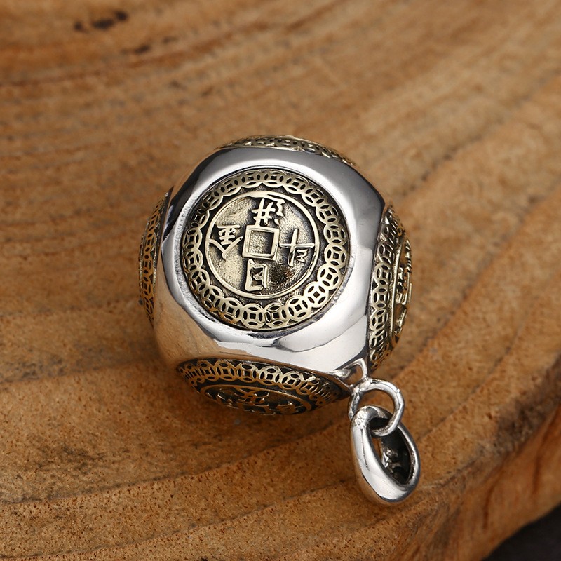 Rolling Wealth Ball Pendant, S925 Silver, Chinese Coin Feng Shui Fortune Amulet