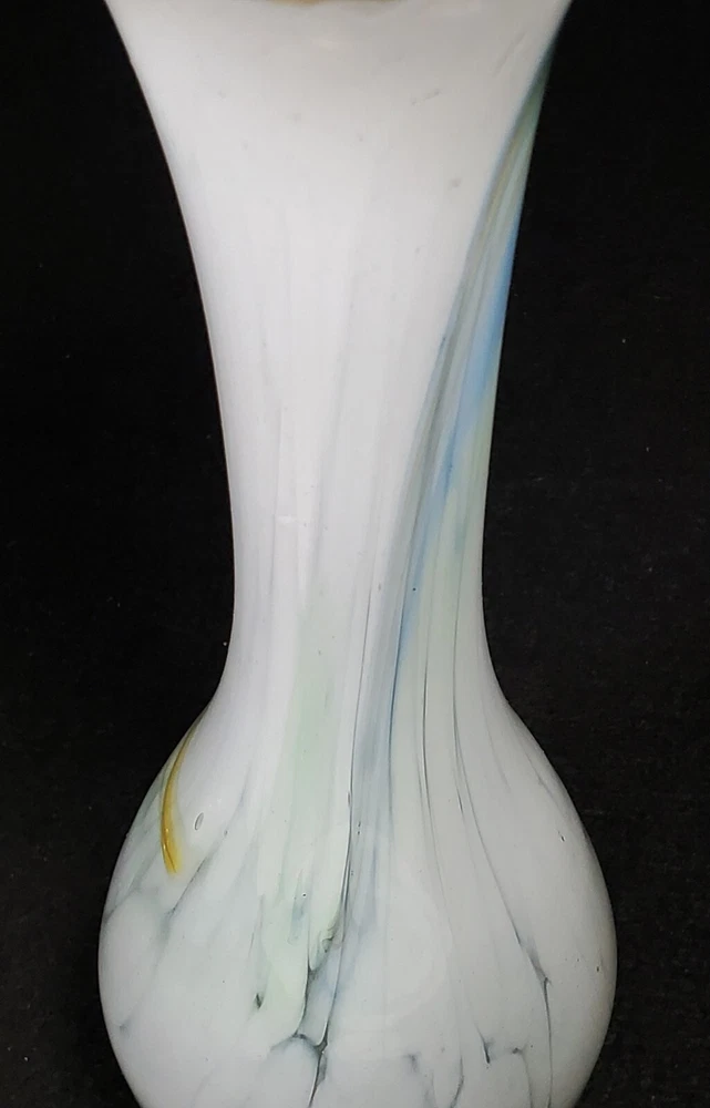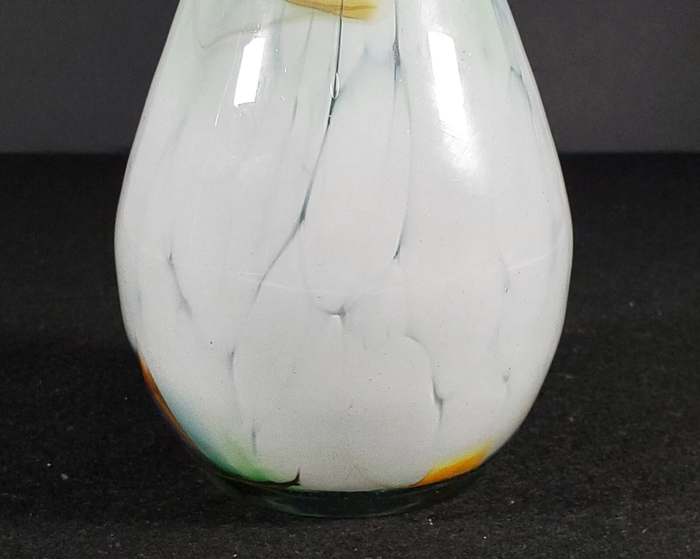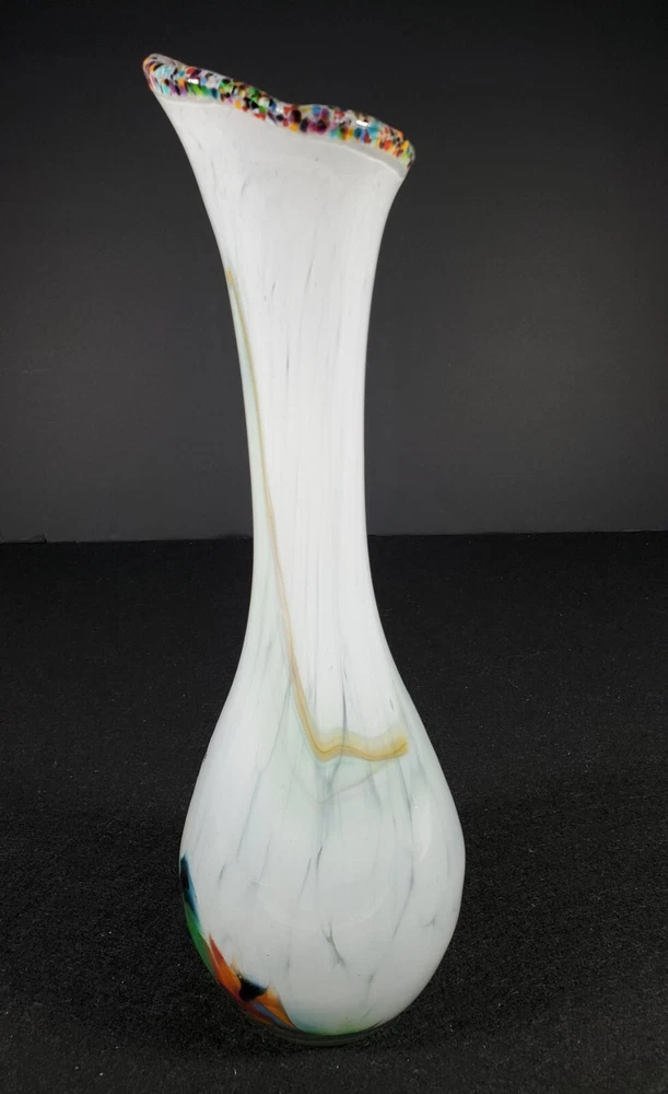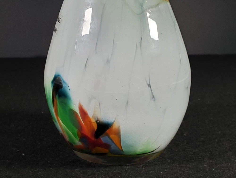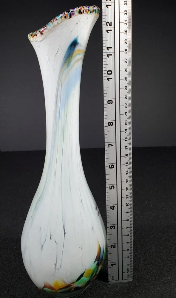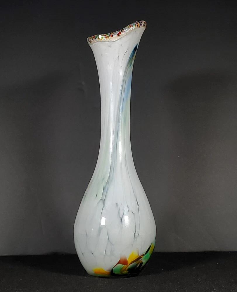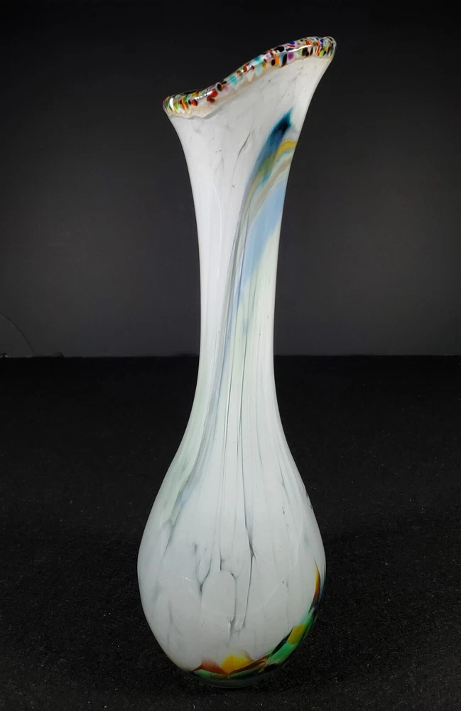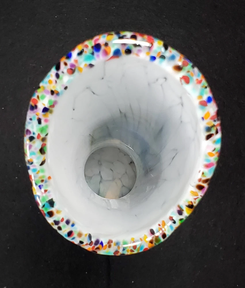 Romanian Art Vase With Millefiori Designed Rim & Colorful Abstract Hourglass.