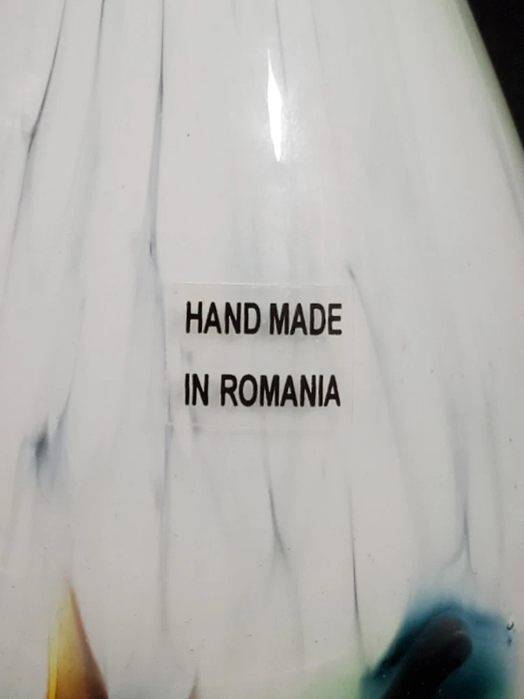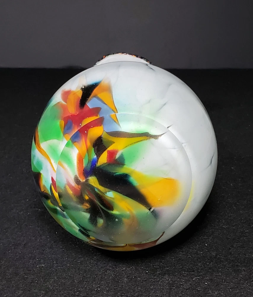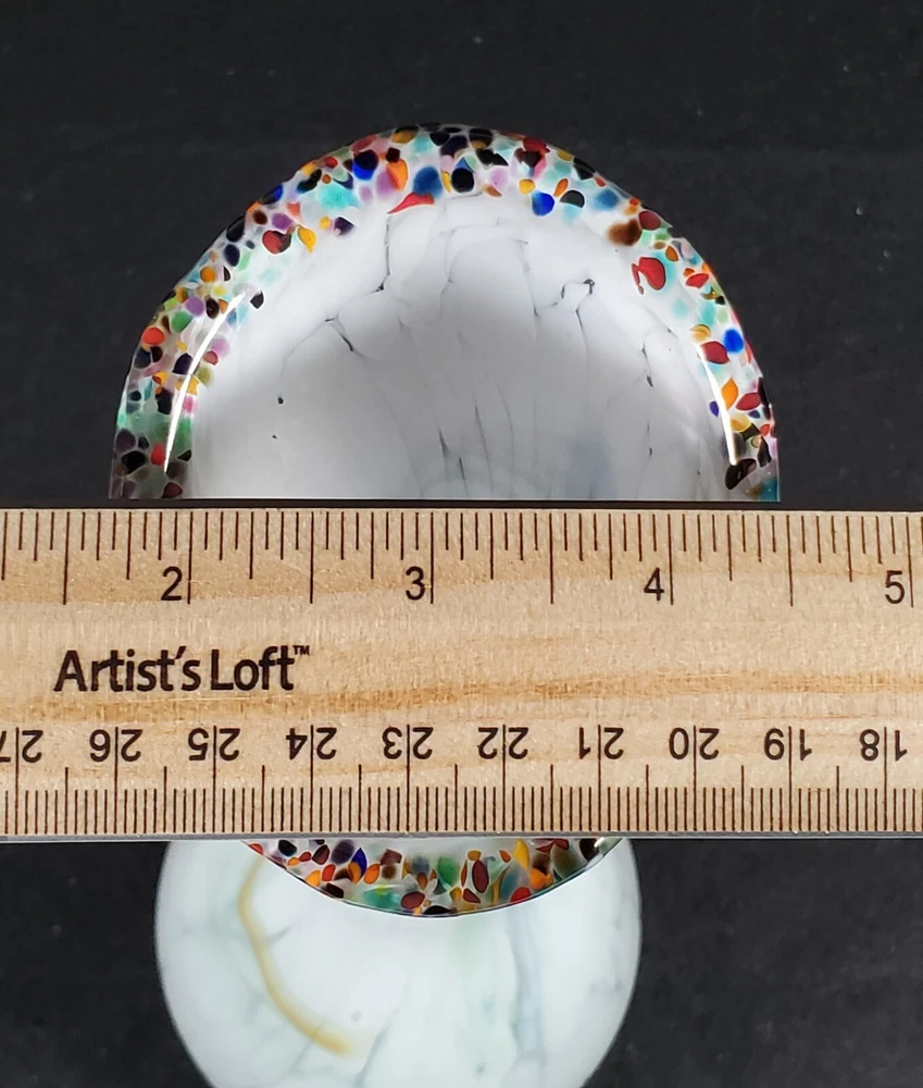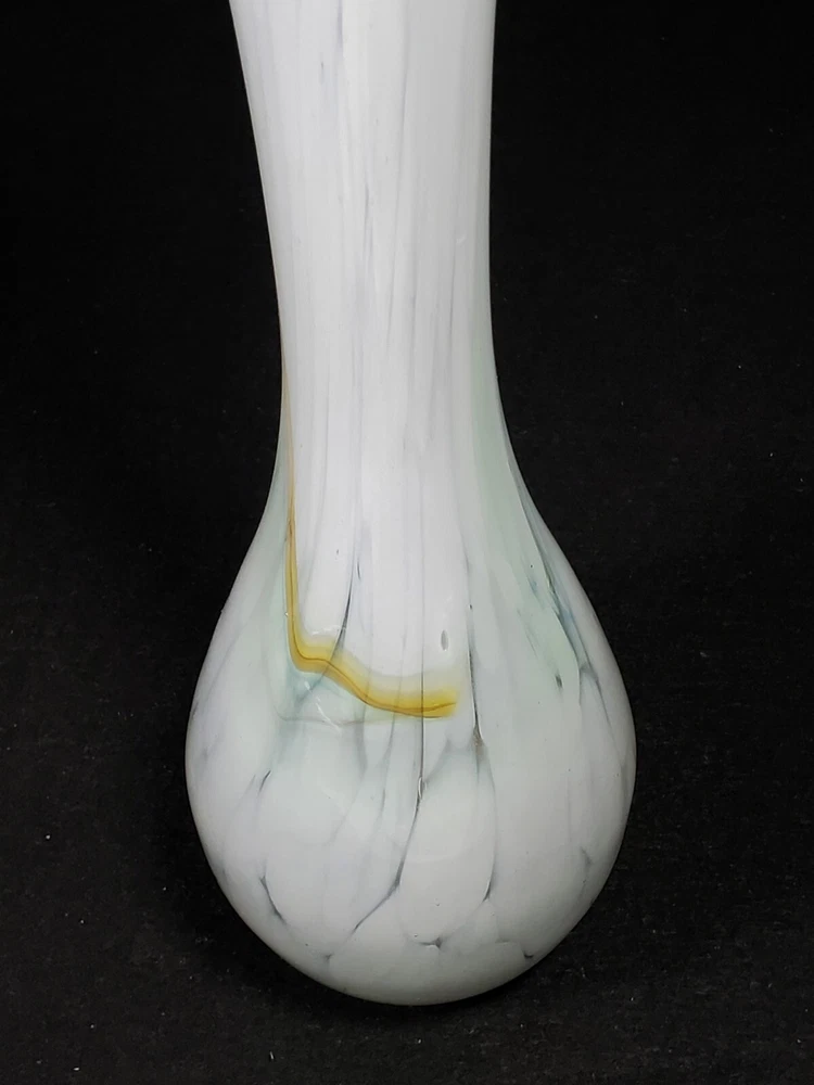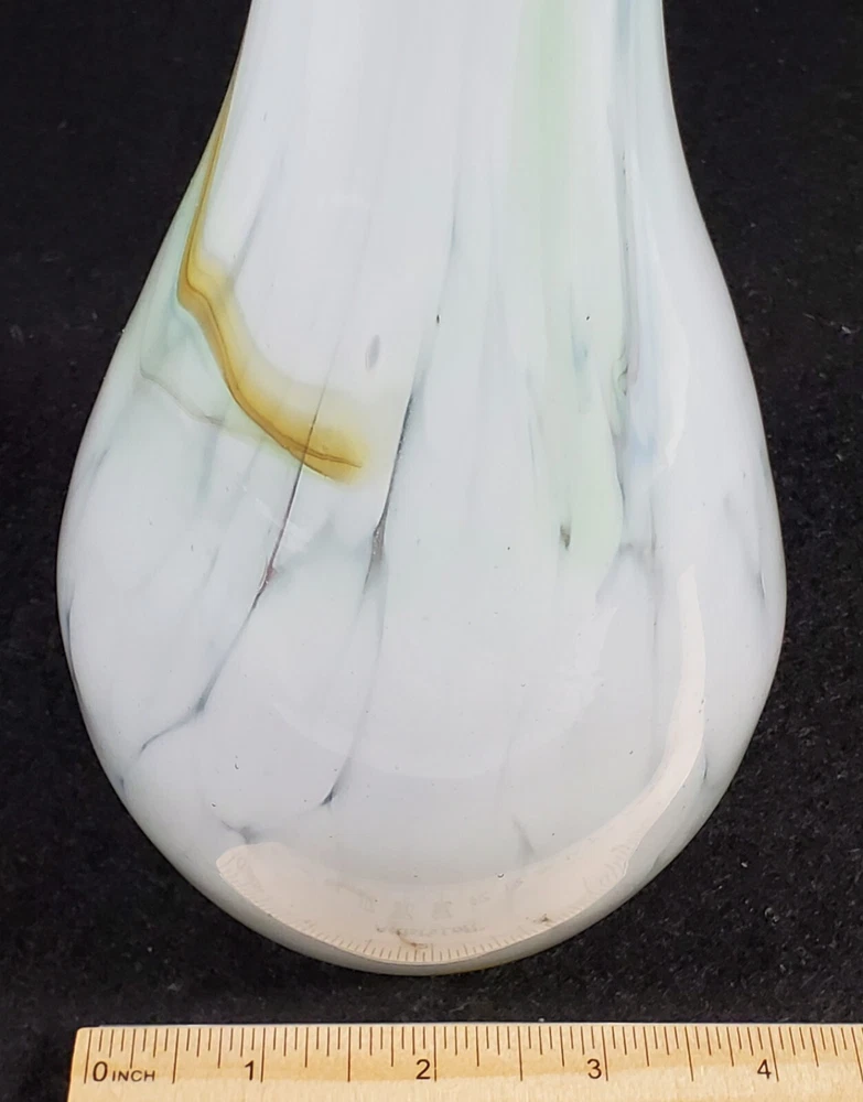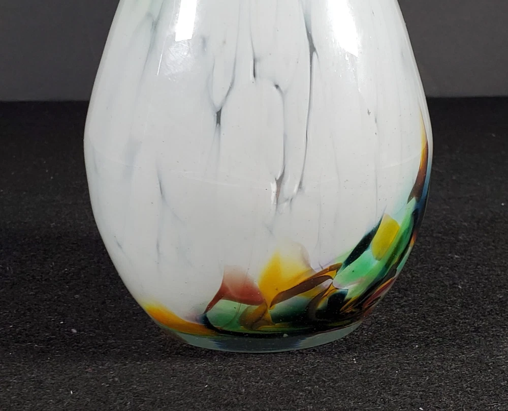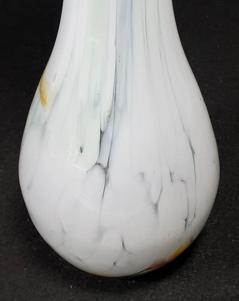 Romanian Art Vase With Millefiori Designed Rim & Colorful Abstract Hourglass.