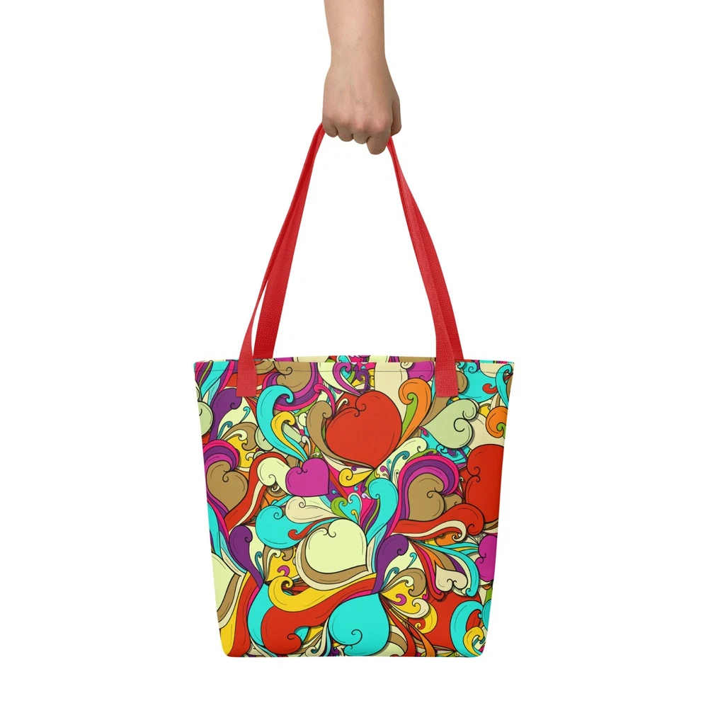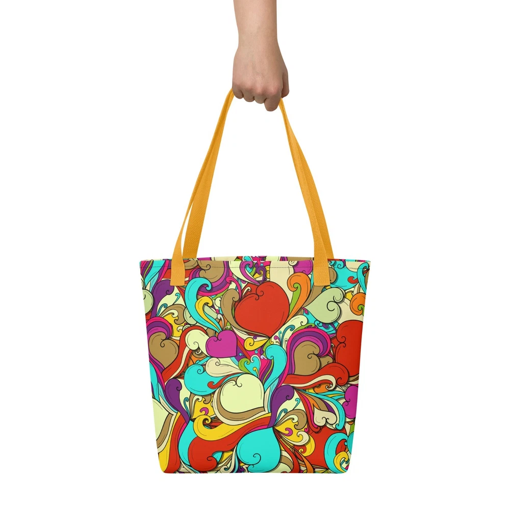 A spacious and fashionable bag in which you can carry everything that matters. • 100% polyester • Bag size: 15″ × 15″ (39 × 39 cm) • Capacity: 2.6 US gal (10 l) • Maximum weight limit: 44lbs (20 kg) • Dual handles made from 100% natural cotton bull denim • Handle length: 26″ (67 cm), width 1″ (2.5 cm) • The handles can slightly differ depending on the fulfillment location • Blank product components sourced from Israel This product is made especially for you as soon as you place an order, which is why it takes us a bit longer to deliver it to you. Making products on demand instead of in bulk helps reduce overproduction, so thank you for making thoughtful purchasing decisions! • Traceability: - Knitting—China - Dyeing—China - Manufacturing—Latvia • Contains 0% recycled polyester • Contains 0% dangerous substances • This item releases plastic microfibers into the environment during washing Track Page Views With Auctiva's Counter