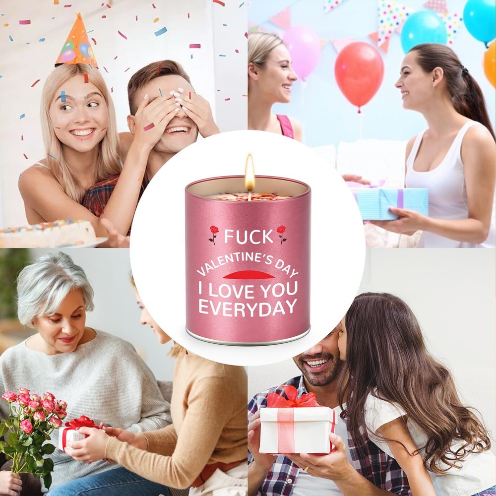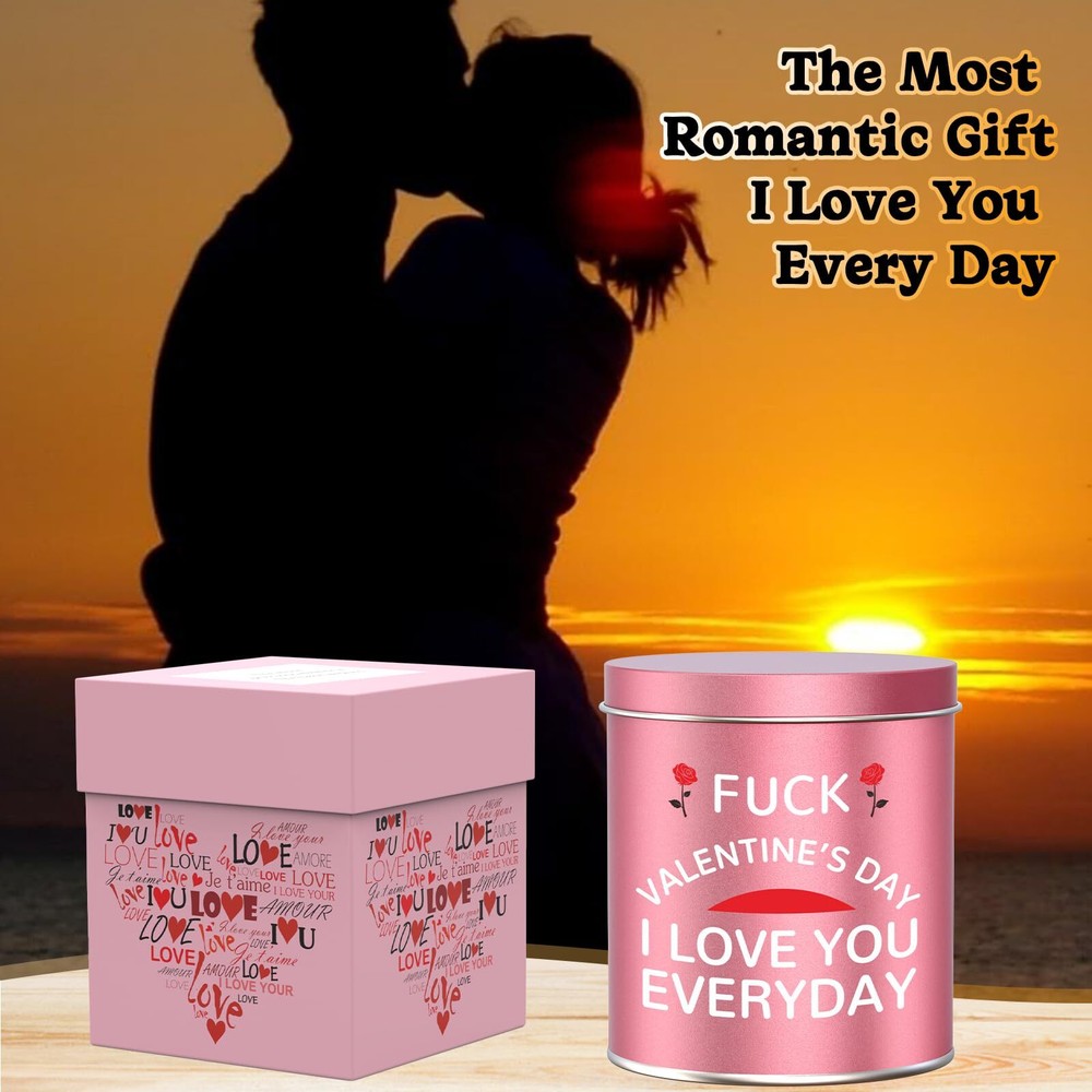 Valentine's Day Gift Candle Stocking Stuffers Scented Candle for Women Features: VALENTINES DAY GIFTS: This scented candle gifts with funny humorous quote, unique best gifts idea for her on Valentines Day wedding or birthday, and great for relief stress, yoga, spa, sleeping. VALENTINES GIFTS FOR ANY OCCASIONS: Specially made scented candle gifts with rich fragrance for her, wife, she, women, Valentines Day, Christmas, wedding or birthday, gag gifts, anniversary gifts from him,is the great addition to the home NATURAL WAX: Scented candle is made of quality wax, using 95% natural pure quality wax and 5% essential oil, which can provide natural health and fresh aroma for a long time SIZE AND BURN TIME: 9 oz and can burn for about 55-60 hours. The candle wick is lead-free and will not produce black smoke when ignited, clean the jar with hot soapy water can be recyclable PERSONALIZED DESIGN: "Valentine's day I love you every day". Funny text is printed on the side of the tin can, combined with the unique surface pattern design, unique gifts ideas for her who has everything 🌻 If you need more quantity than shown available - just send me a message and I'll increase the purchased limit for you 🌻 SHIPPING We are always working hard to ensure your package arrives as soon as possible. Please understand that some factors like weather, high postal traffic, and the performance of shipping companies are outside of our control. We offer free shipping to the lower 48 states. We do not accept P.O. Boxes. Please provide a physical address. Thank you 🌻 TRANSLATE with x English Arabic Hebrew Polish Bulgarian Hindi Portuguese Catalan Hmong Daw Romanian Chinese Simplified Hungarian Russian Chinese Traditional Indonesian Slovak Czech Italian Slovenian Danish Japanese Spanish Dutch Klingon Swedish English Korean Thai Estonian Latvian Turkish Finnish Lithuanian Ukrainian French Malay Urdu German Maltese Vietnamese Greek Norwegian Welsh Haitian Creole Persian