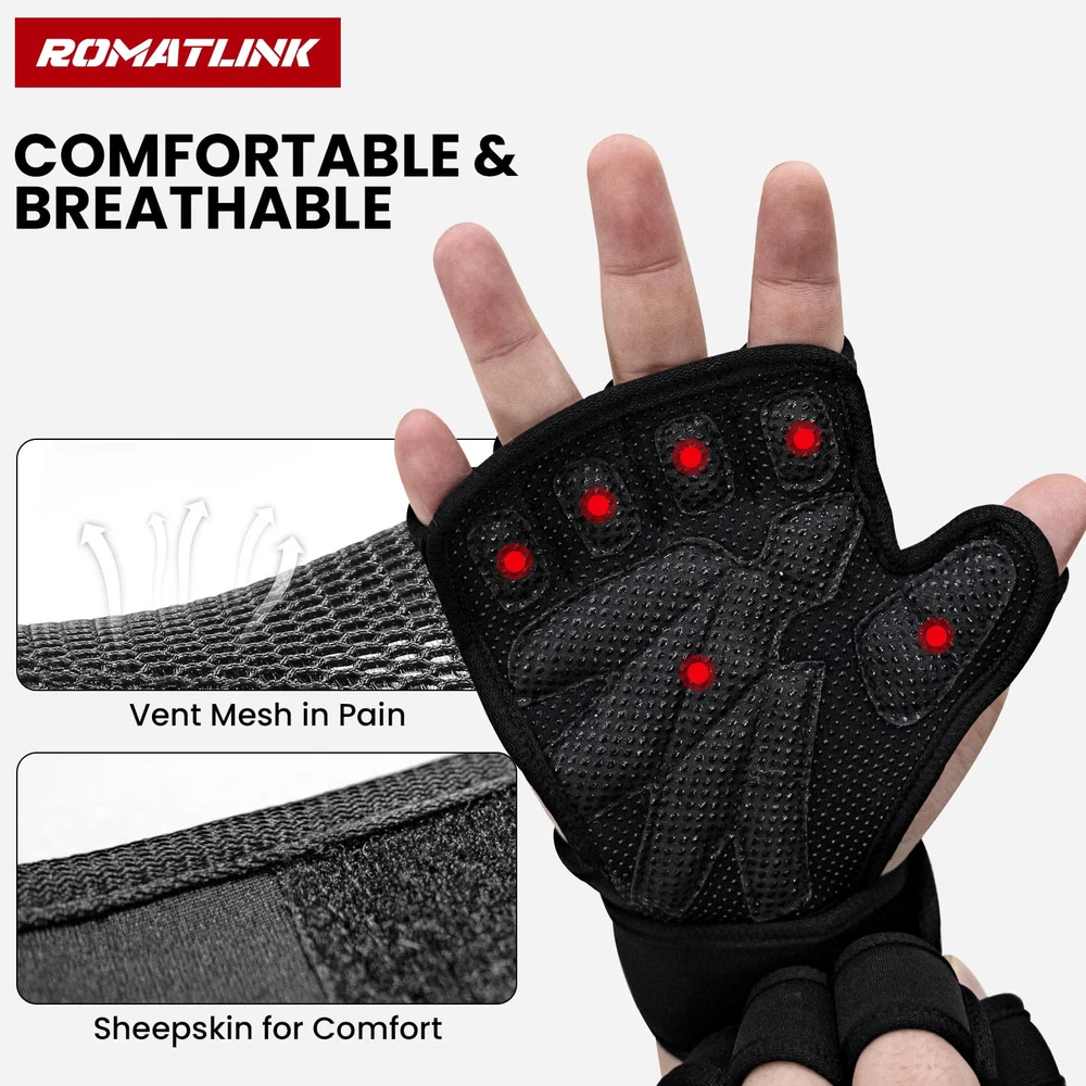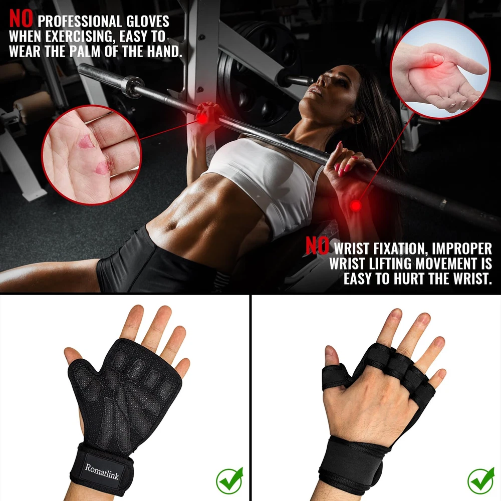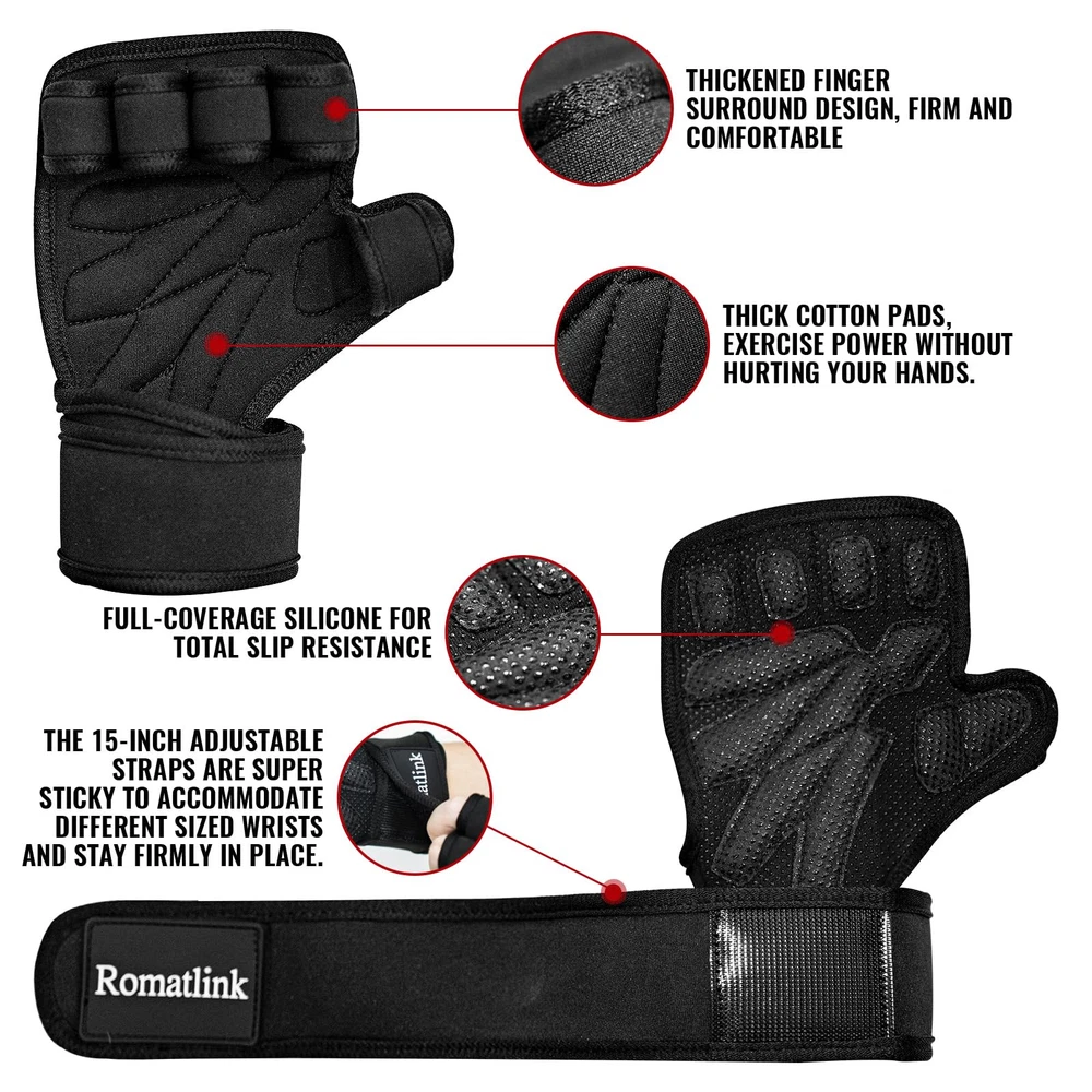 💪FULL PALM PROTECTION: The workout gloves feature thicker and wider cotton pads plus silicone non-slip protective layer that covers your palms. Long durable sports exercise, weight lifting, rowing, outdoor cycling, gym training and pull up power lifting. 💪COMFORT:Gym gloves for men are made up of microfiber mesh can rapidly scatter the heat and dampness on the hand and realm the palm cool and gasping. You can easily wipe off the sweat because of sweat-absorbent fabric during training. 💪PROTECT YOUR WRIST: The adjustable wrist strap allows the user to tighten or loosen it according to their personal comfort. The wider design immobilizes the wrist and makes wrist lifting less likely to injure the wrist. Open hand design adds great comfort for intense workouts. 💪EASY TO WEAR: Sticky fitness gloves are flexible and easy to wear, with soft but tough finger loops that hold fingers firmly in place. Velcro is well made and sticky. Can be quickly removed after workout training. 💪WIDE RANGE OF USE:Workout with shock-absorbing foam and anti-slip silicone pad grip flexible on the barbells, kettlebells and dumbbells for strength reps exercising and appropriate for various kinds of indoor and outdoor gymnastic preparation.